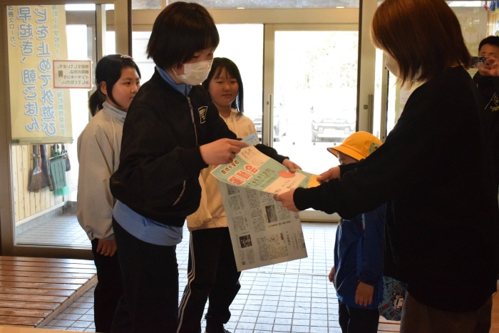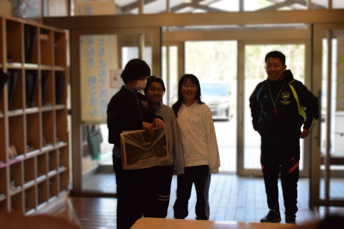 野付小学校運動会ポスターの掲示 2025年05月27日(火) 幼保小中連携 #幼小中連携 6月1日は野付小学校運動会 昨日 野付小学校の4年生と6年生が,運動会ポスターを掲示して ほしいとのことで来園しました。 久しぶりの幼稚園訪問は恥ずかしかったようですが すてきなポスターでした。 玄関に掲示していってくれましたので ぜひご覧ください。 野付小学校のみなさん、運動会がんばってくださいね!