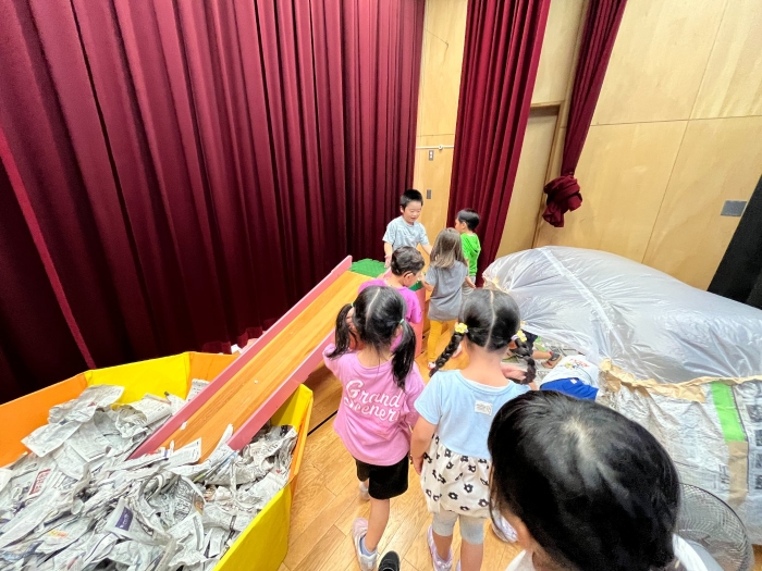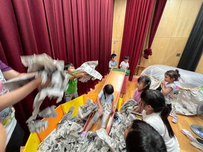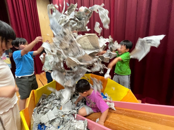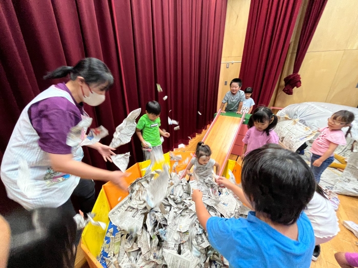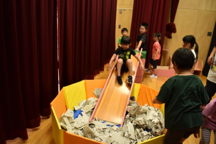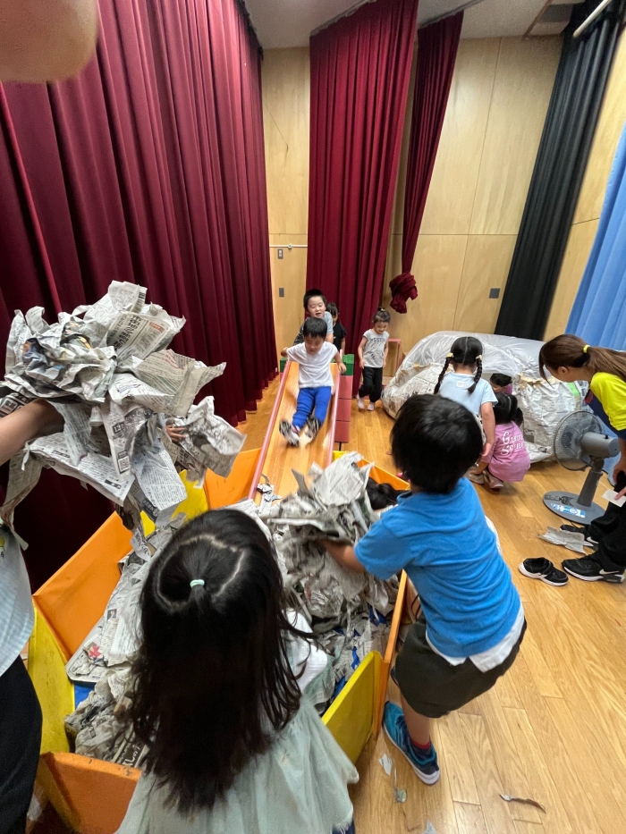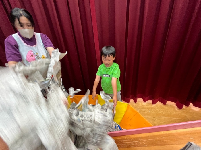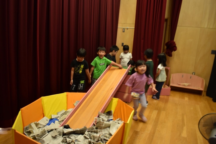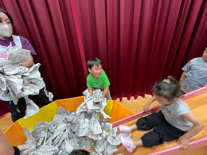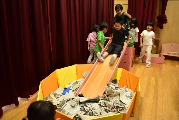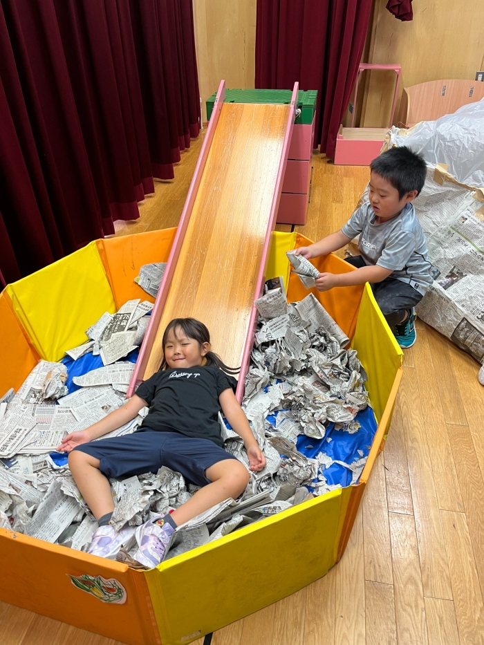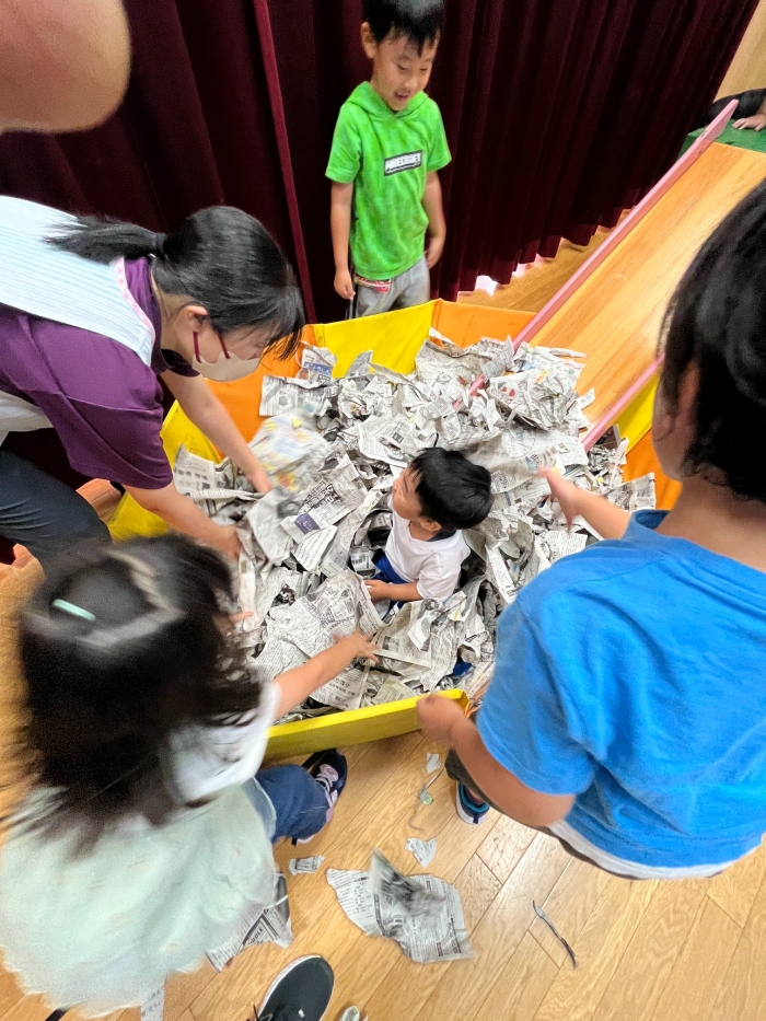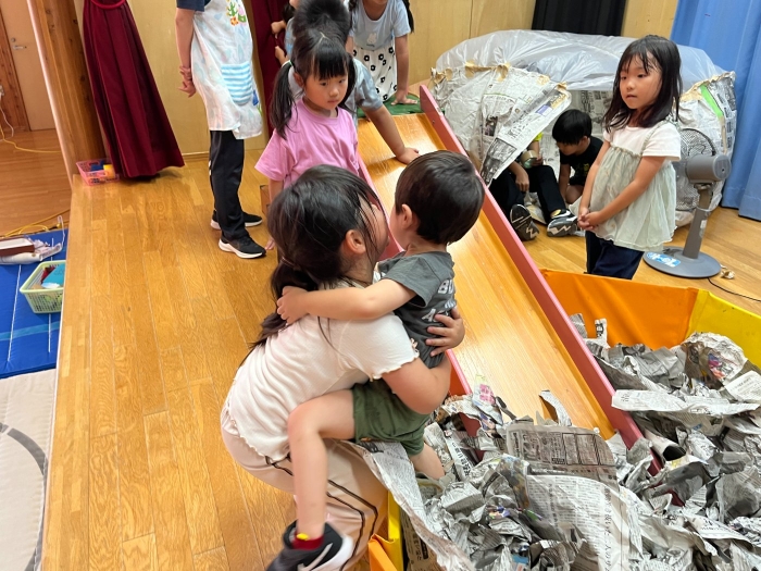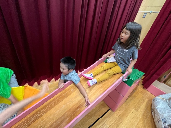 これで今日のどっきり大作戦は終了!うめ組、もも組さんたちは,さくら組さんの作った家やプールや,そしておもてなしに大満足だったようです。そしてさくら組さんも,喜んでくれたお友達の気持ちを感じて大満足だったようで,とてもよい表情でした。まだ第2弾の予定があるとのことだったので,どんなものなのかな?楽しみですね。