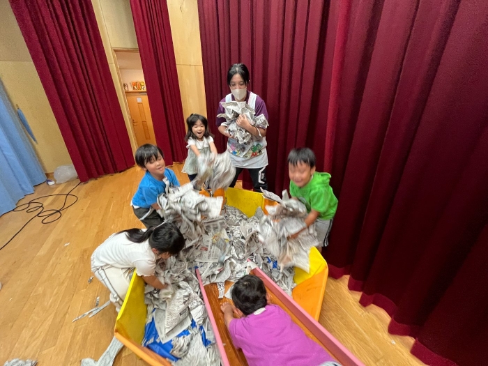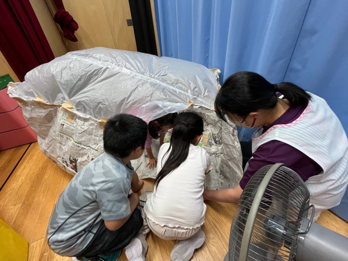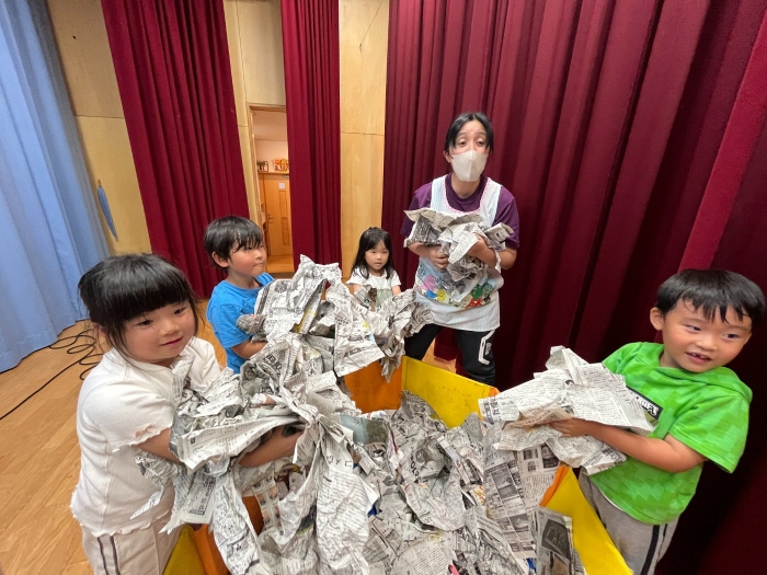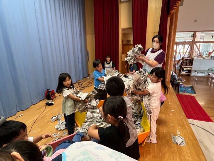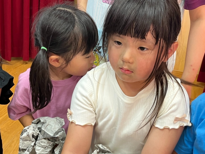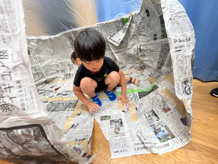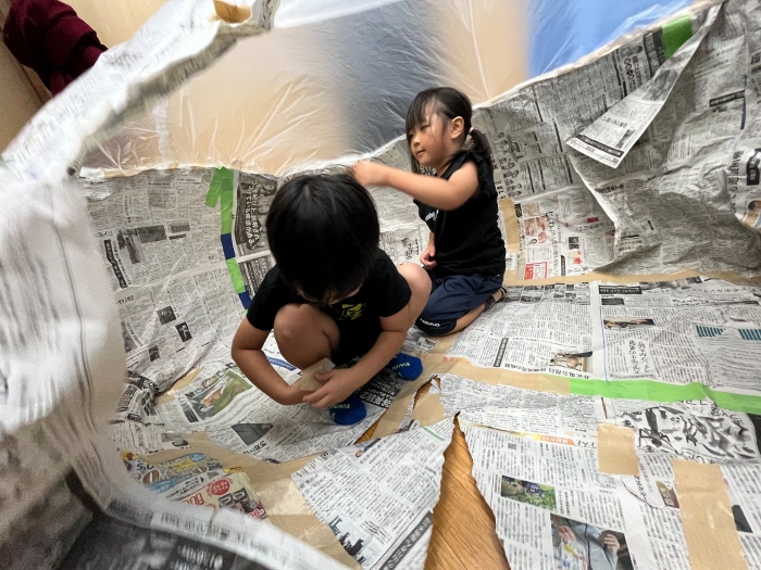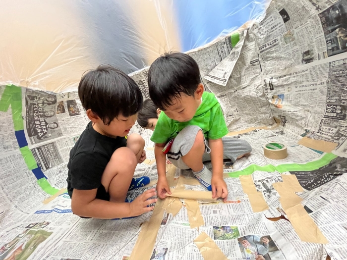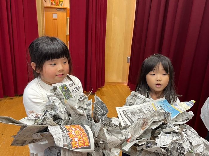 なんとなく,どっきり大作戦の内容・雰囲気がわかってきましたね。最初はお化け屋敷をイメージして始めたとのことでしたが,少しずつ,子どもたちのやりたい,作りたいもののイメージが変化していき「どっきり大作戦」になったみたいです。さくら組さんのイメージ,実現できたのかな?あとは給食後に行うため,もりもり給食を早く食べ終わる!と意気込んでいたさくら組さんです!
