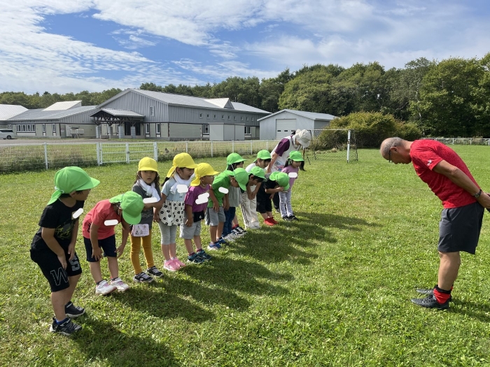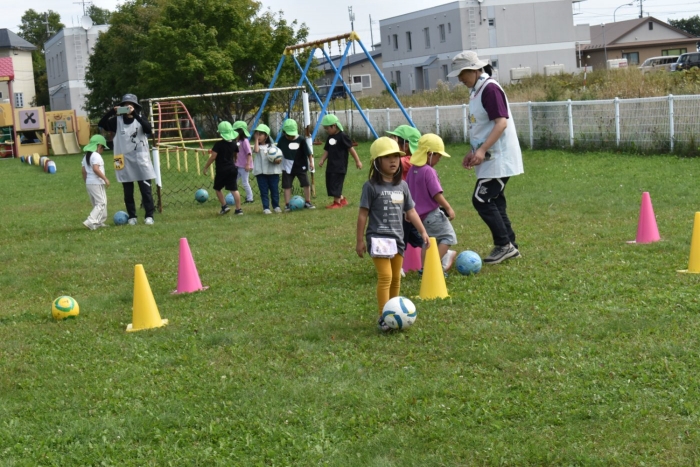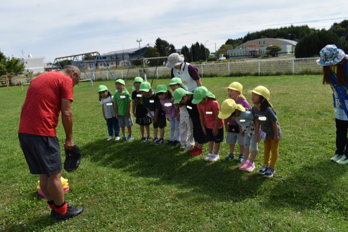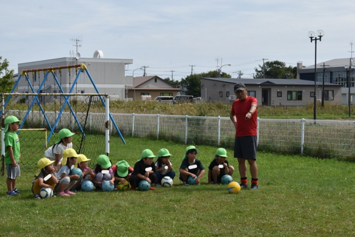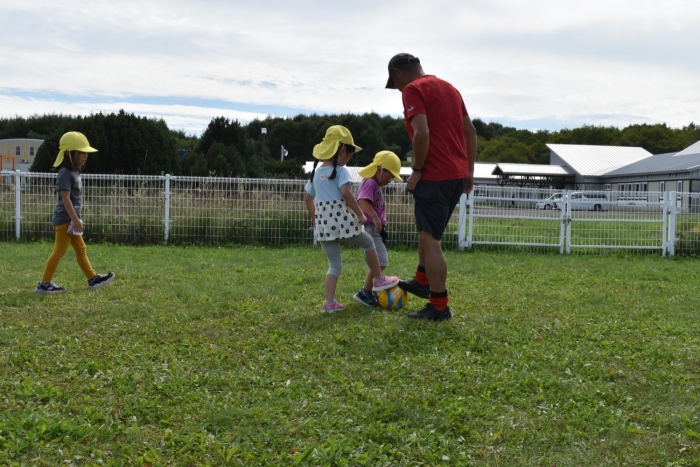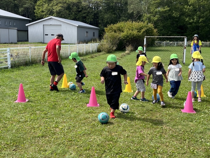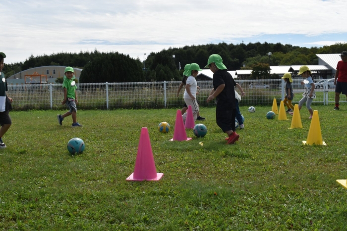 今回が最終回となるサッカー教室。サッカーの楽しさを知り,サッカー教室を楽しみにしていた子どもたちの姿がありました。講師の先生に認めてもらったことで,サッカーに自信を持ち始めたお友達もいました。自分の頑張りが認められることはうれしいことですよね。楽しみながらも,説明などの話をしっかりと聞くこと,挨拶,返事をしっかり行うことなども意識して行いました。