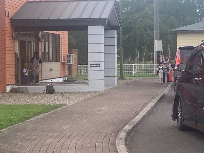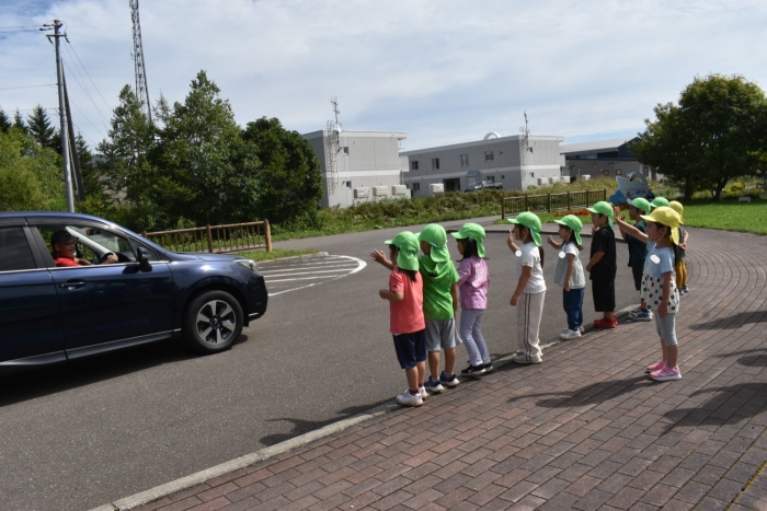 15時に送信いたしました、連絡メールをご確認いただいたご家庭から,玄関前まで車で迎えにきていただき,職員が園児を乗車させる,ドライブスルー方式で,引き渡しを行いました。