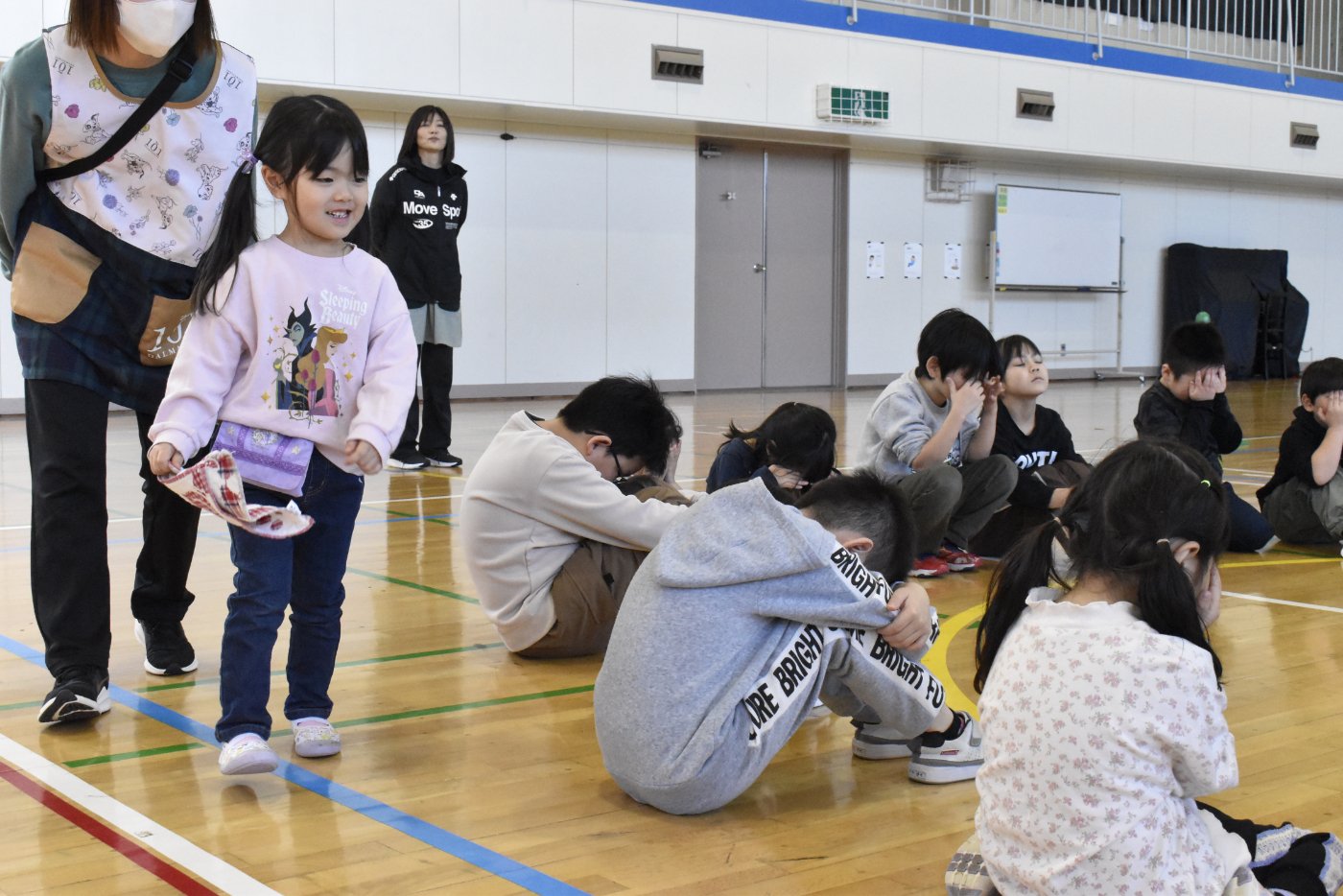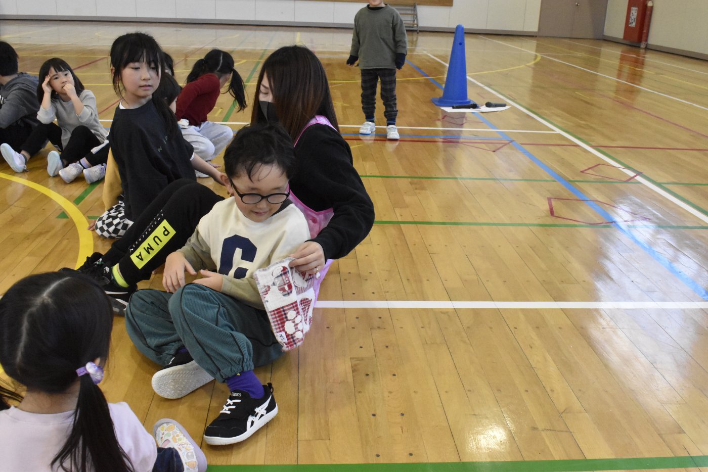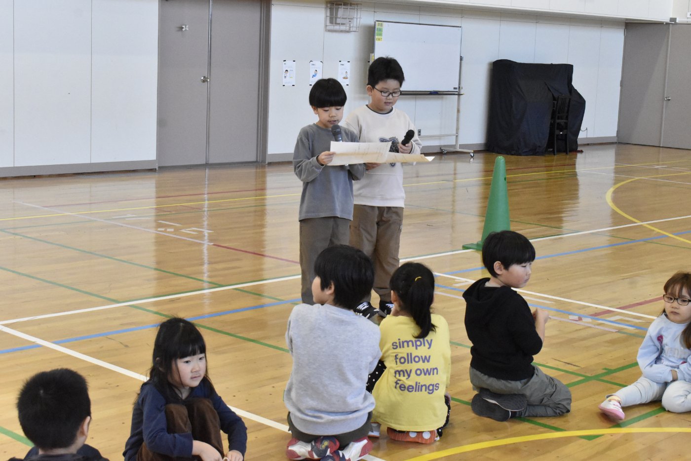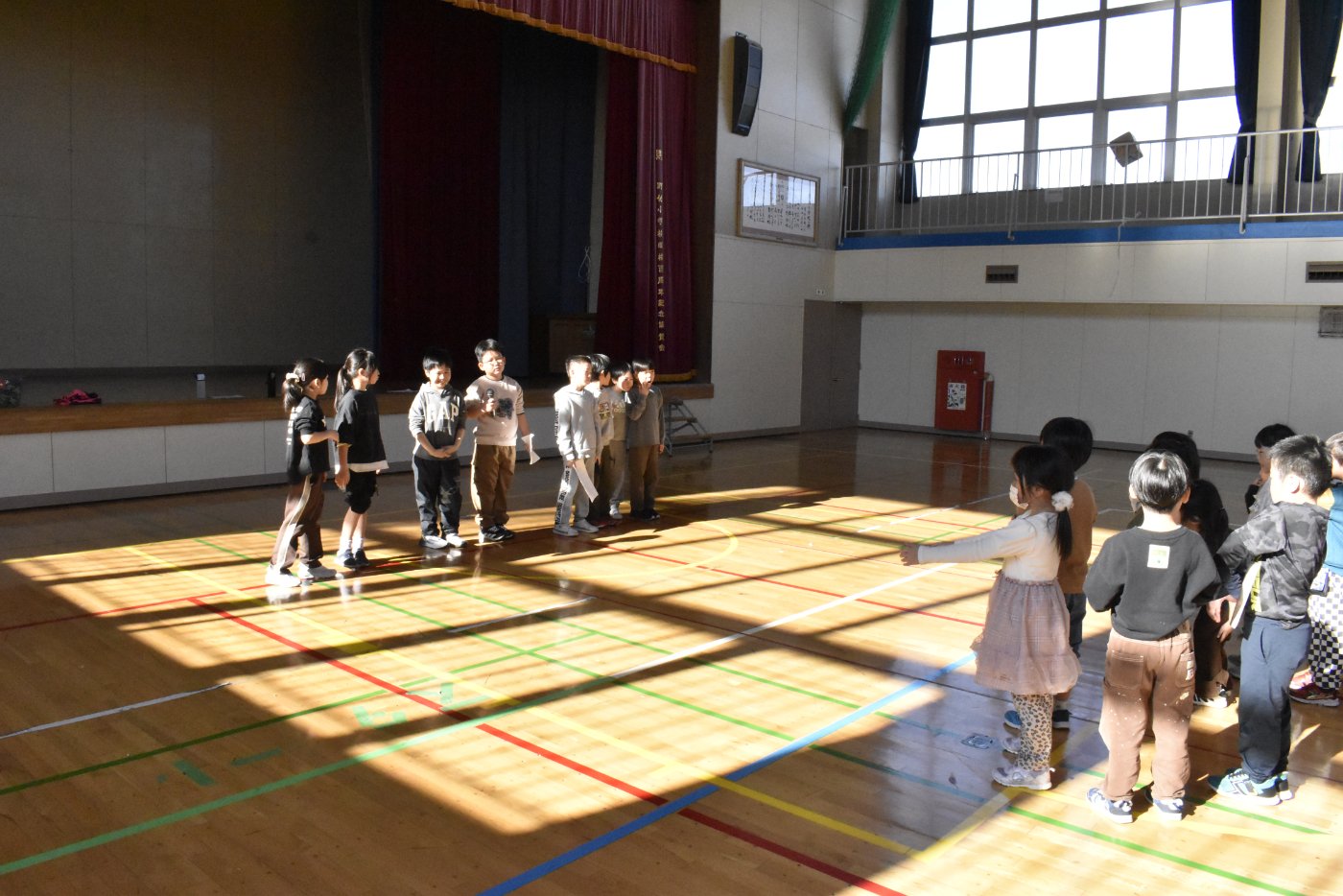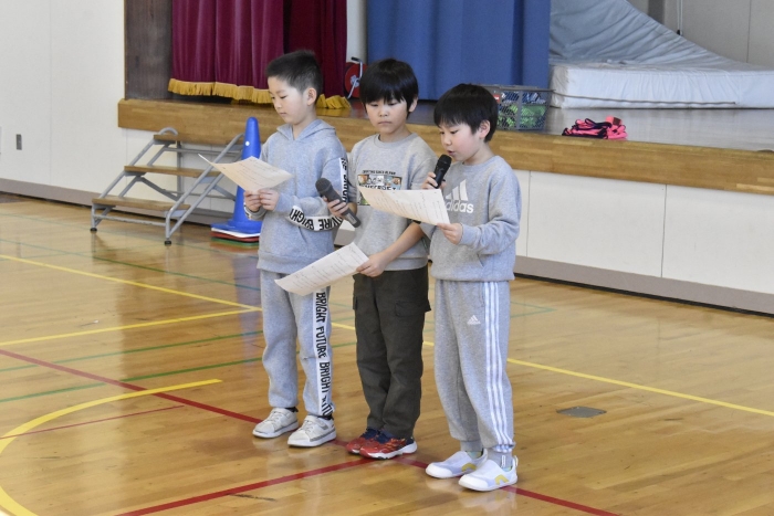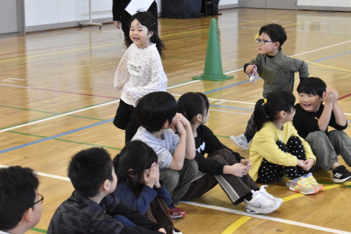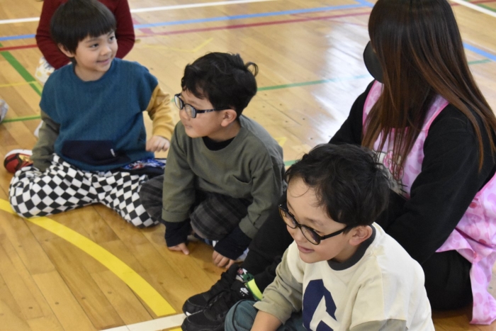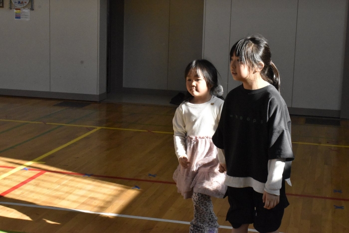 野付小学校2年生から招待状をいただき,全園児で小学校にお邪魔してきました。幼稚園児のためにお楽しみ会を企画してくれたのだそうです。お楽しみ会って何かな?と,楽しみに出かけてきました。