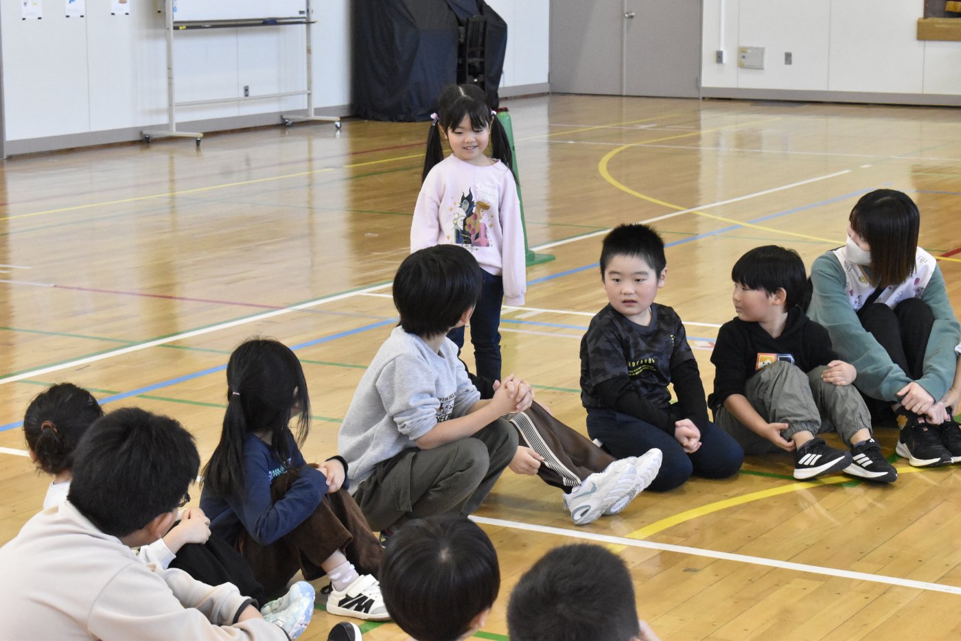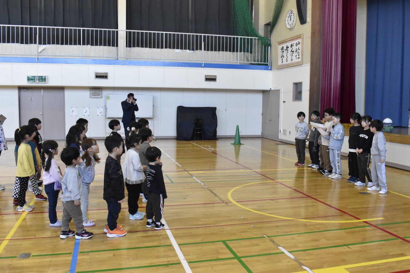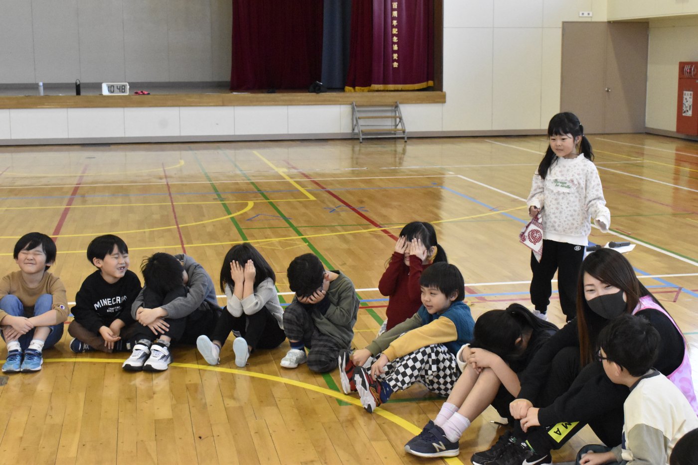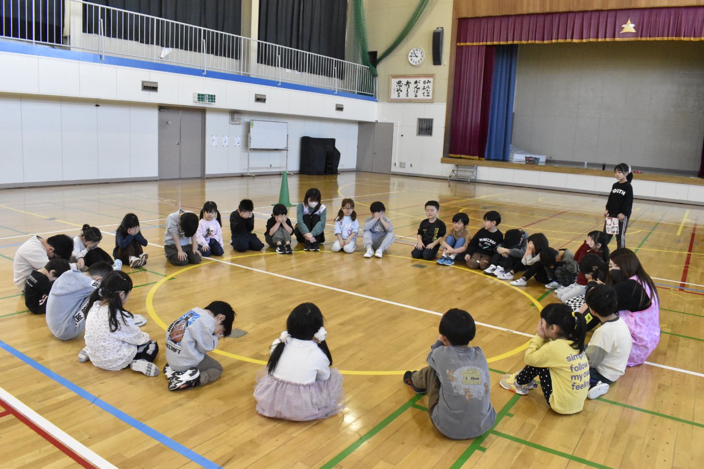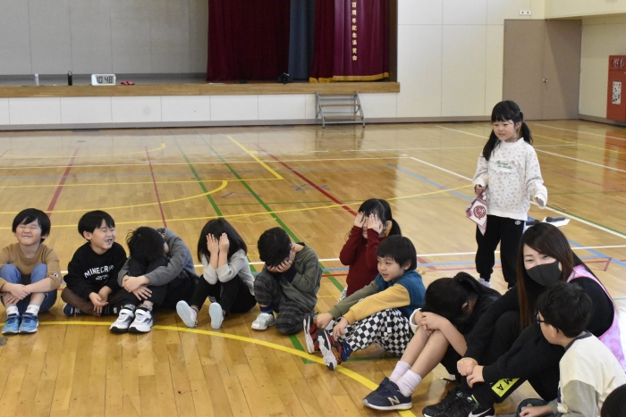 最後に2年生と終わりの挨拶をしました。今日はたくさんいろいろなゲームを楽しみましたね。