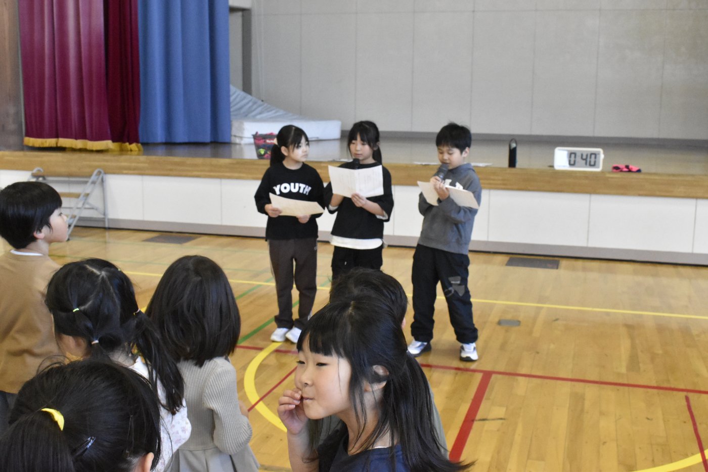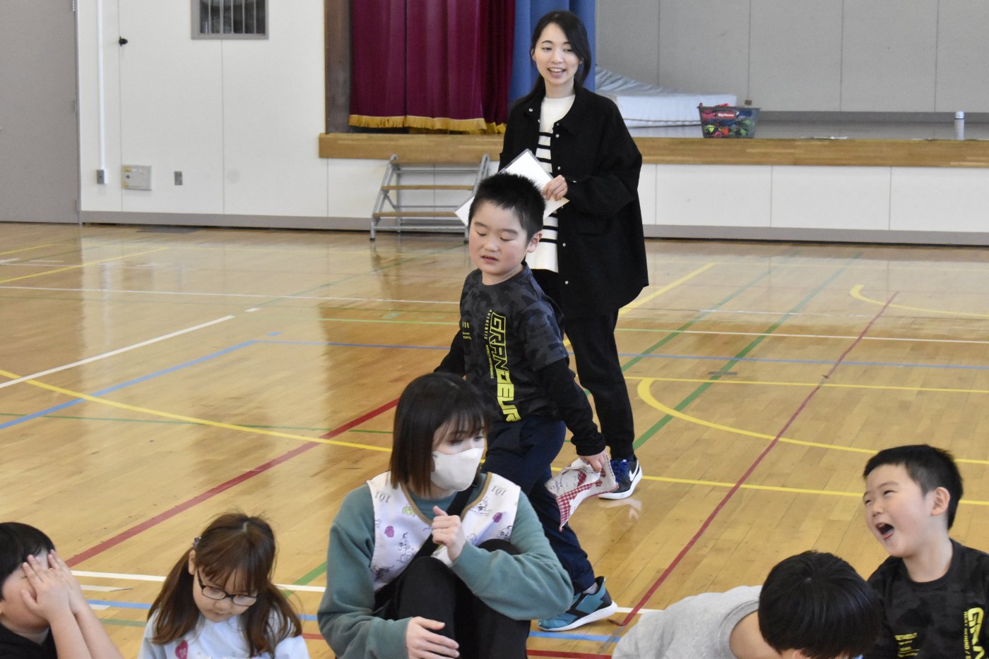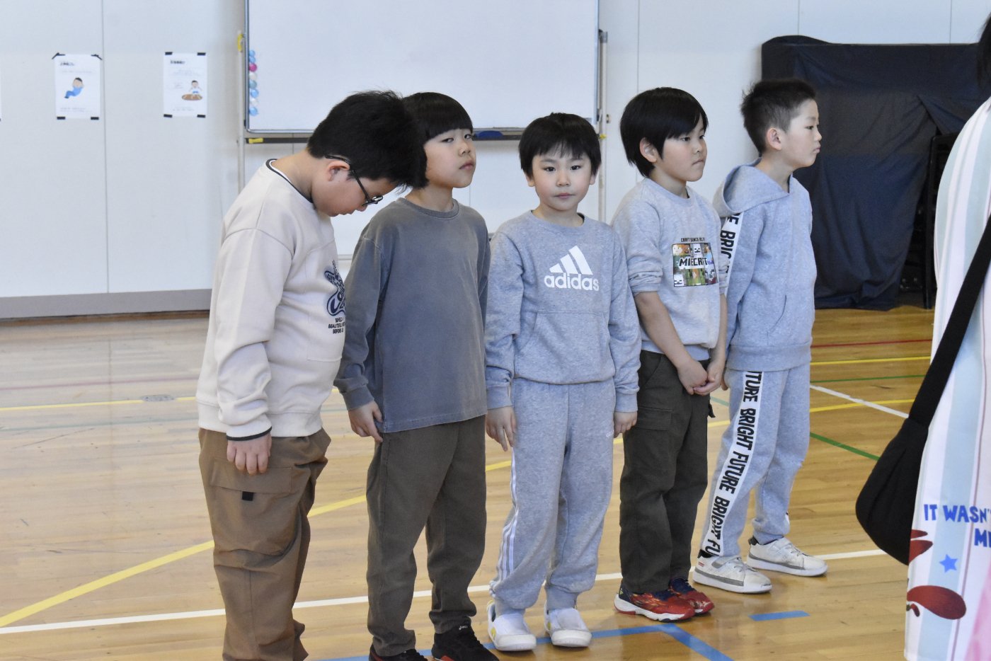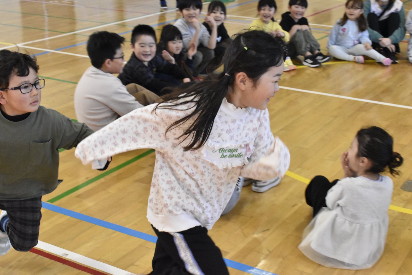 最後に2年生と終わりの挨拶をしました。今日はたくさんいろいろなゲームを楽しみましたね。