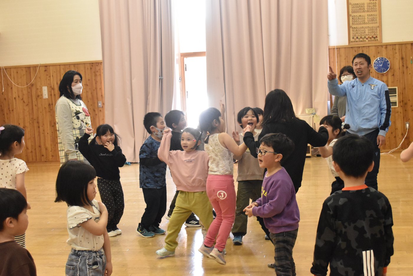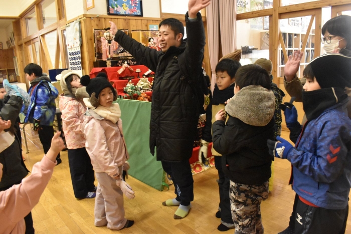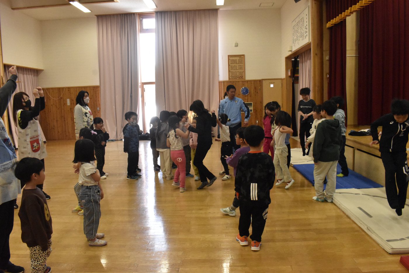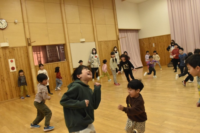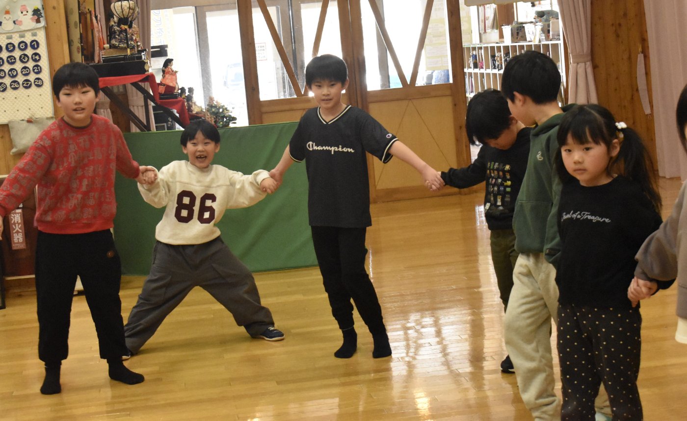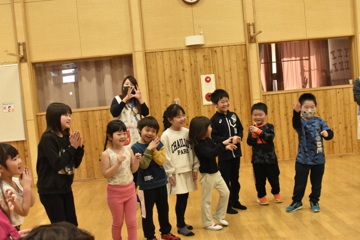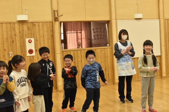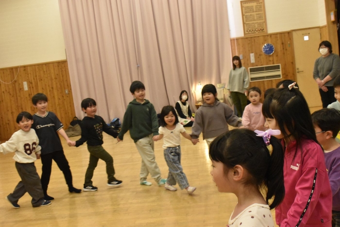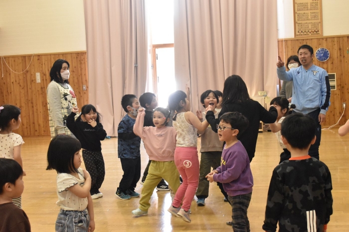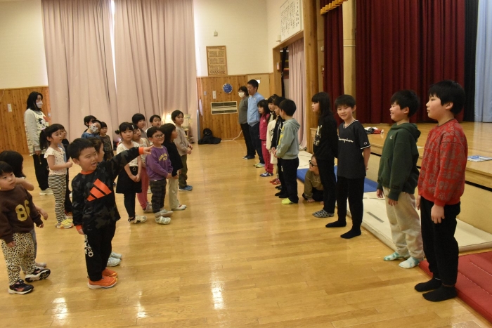 続いても,園児からのリクエストで「むっくりくまさん」をみんなでやることになりました。3年生ともなると,幼稚園時代にやっていたむっくりくまさんの歌の記憶は薄れていたようですが,園児たちに合わせて歌ってくれて,振り付けも照れずにやってくれる3年生の姿が,かわいいね~と,先生方も目を細めていました(^^)