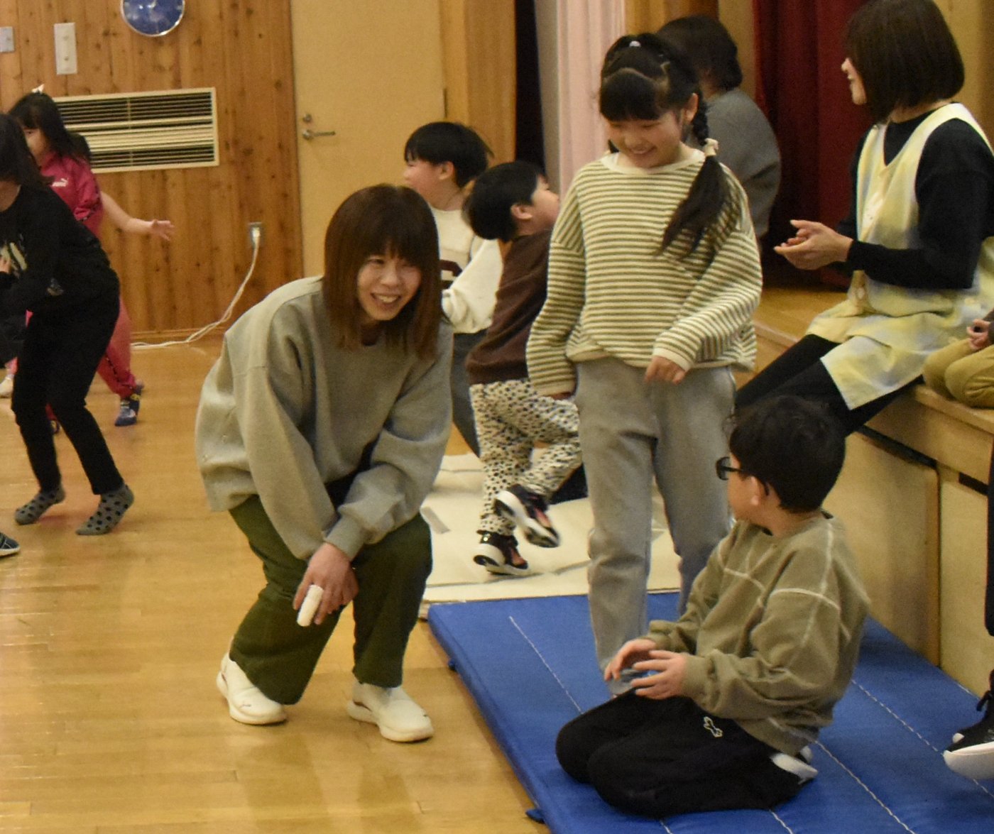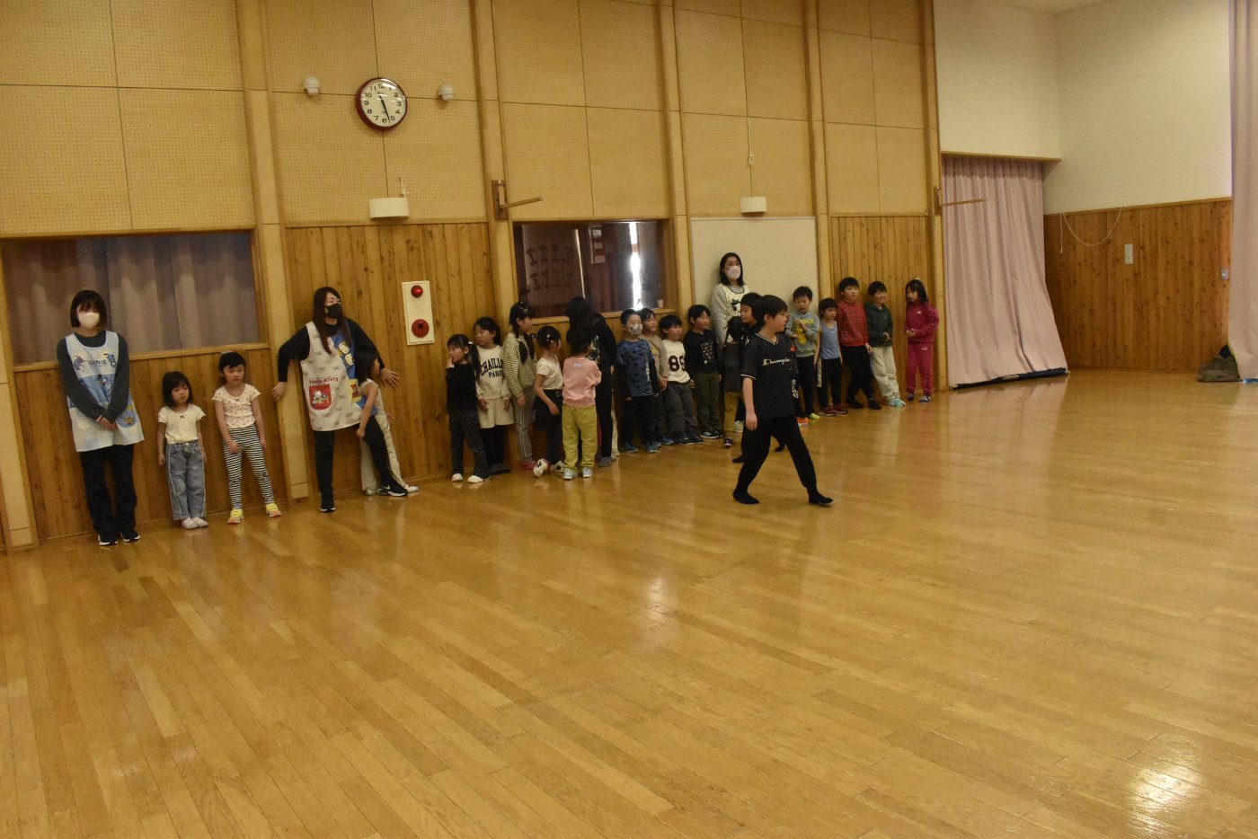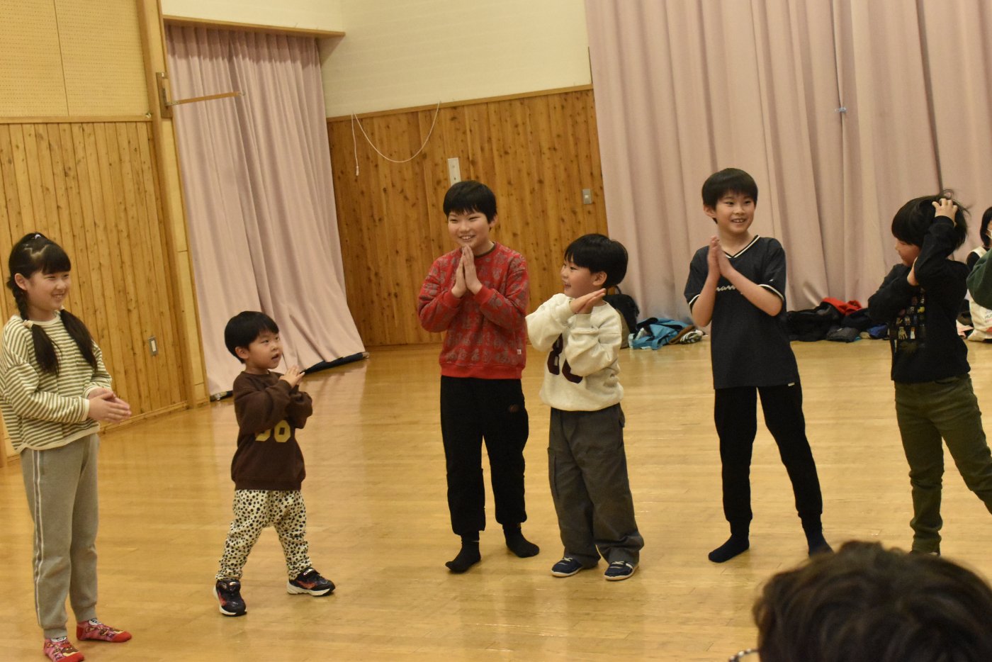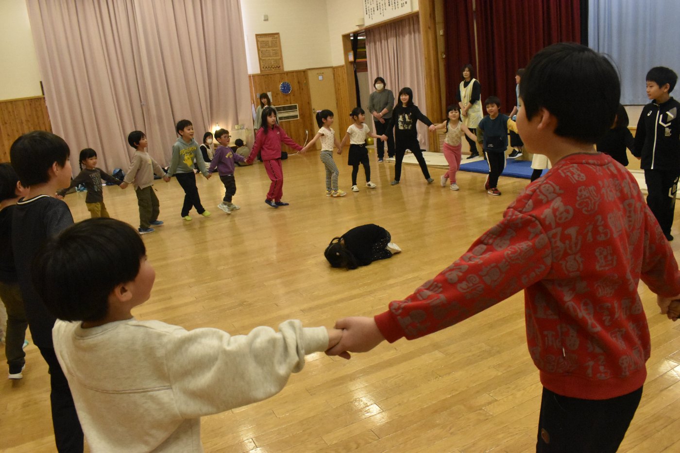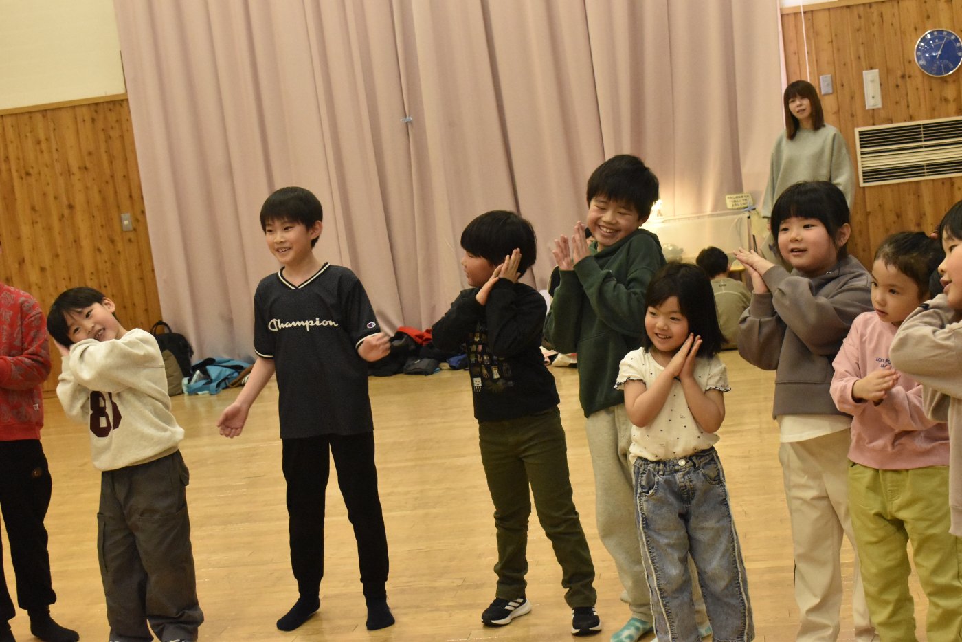 続いても,園児からのリクエストで「むっくりくまさん」をみんなでやることになりました。3年生ともなると,幼稚園時代にやっていたむっくりくまさんの歌の記憶は薄れていたようですが,園児たちに合わせて歌ってくれて,振り付けも照れずにやってくれる3年生の姿が,かわいいね~と,先生方も目を細めていました(^^)