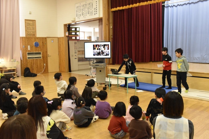 地域行事調べという単元で,野付の文化や地域の行事などを園児に教えてくれました。小学生になったら参加できる行事などについても発表があり,3年生独自の視点での発表が,子どもらしいな…と微笑ましく感じました(*^-^*) 3年生のお友達はみんな緊張感をもって一生懸命発表してくれていました。