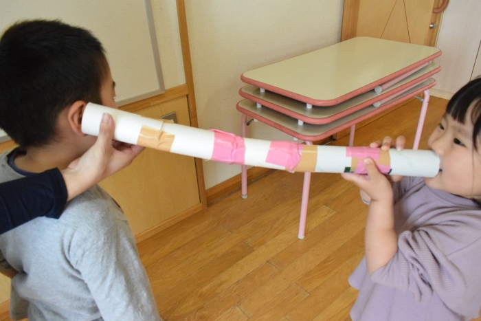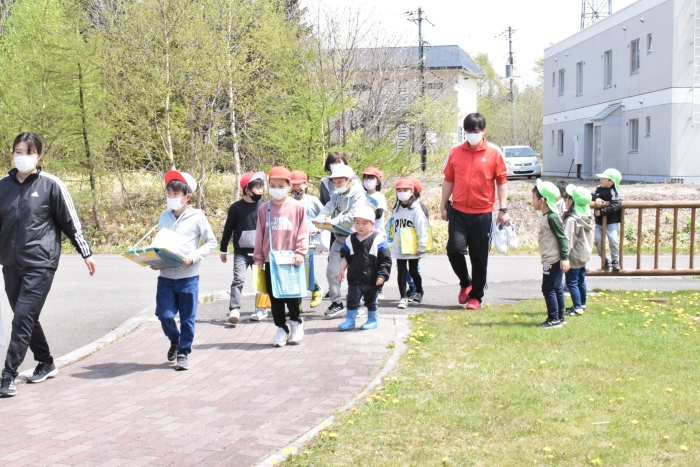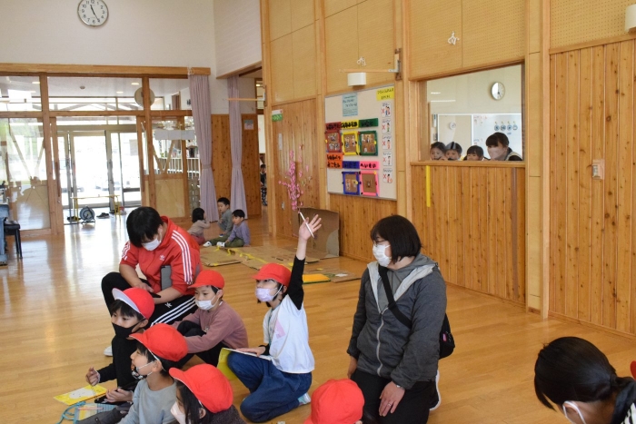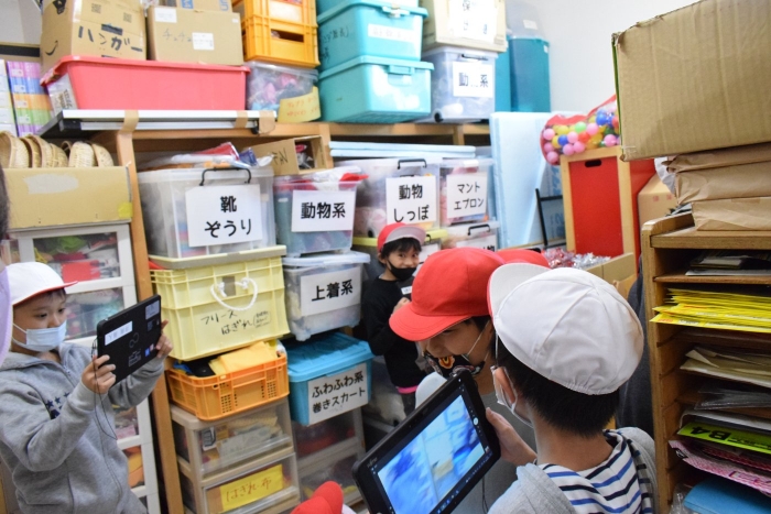 園児たちはお兄さん、お姉さんたちの来園に大喜び、行きたいところへ連れて行ってあげたり、さくらさんは質問に答えたりしていました。 小学生は幼稚園の時に行った森には何があるのか? お遊戯会の衣装はどこにしまってあるのか? 職員室では何をしているのか? など疑問に思っていたことを聞いていました。