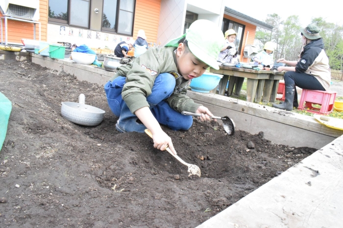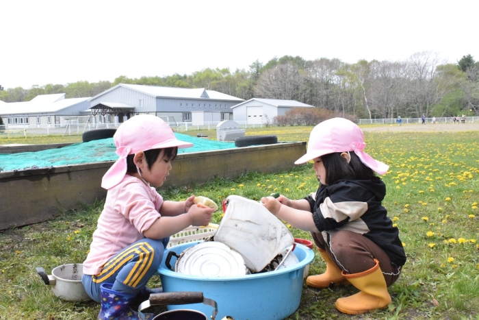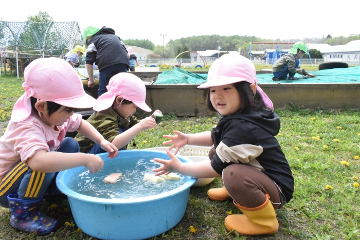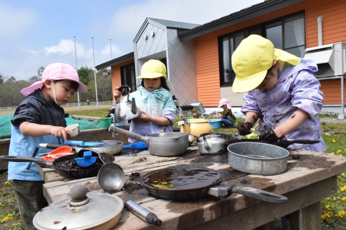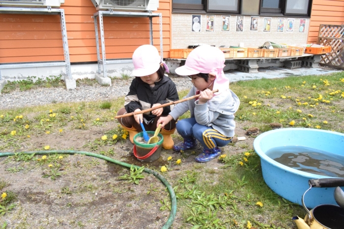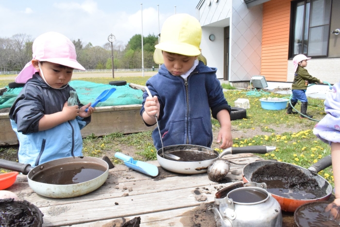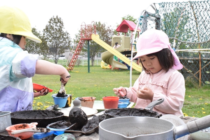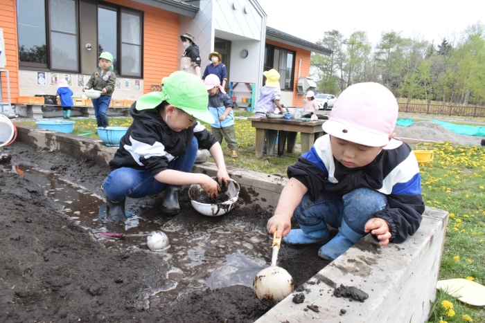 泥場では、泥に抵抗のあった子もお友だちの楽しそうな姿を見て刺激を受けたのか遊びだす姿もありました。 そうやって経験を積んで、世界が広がっていくんですね。