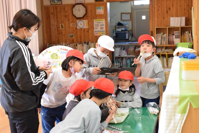 さくらさんが採ったヨモギを3年生に天ぷらにしてご馳走しましたよ!