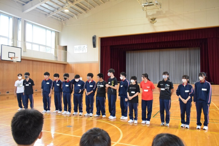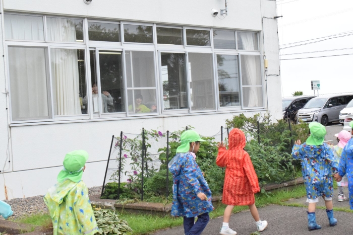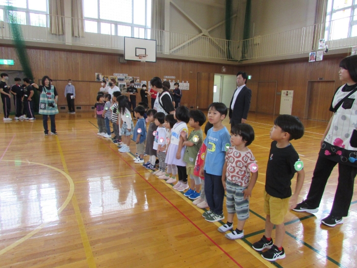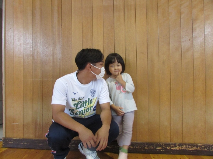 9月に予定されている中学2年生の職業体験と中学3年生の保育実習の前に少しでも慣れておこうと園児と触れ合う時間を設けました。ももさん、さくらさんは久しぶりの中学生との再会に朝からワクワクドキドキ(>_<) 「Hくんに会える~」「Sお姉ちゃんいるかな?」と名前の覚えている子もいましたよ。先日来てくださった英語のM先生に遊んでもらってファンになった子もいて今日会えて感動していましたよ。先日のお礼のお手紙も渡すことができました。校長先生はじめ、先生たちもたくさん出てきてくださって園児たちを歓迎してくださいました。その眼差しがとても温かくて子ども達も自然と親しみが湧いたようです。