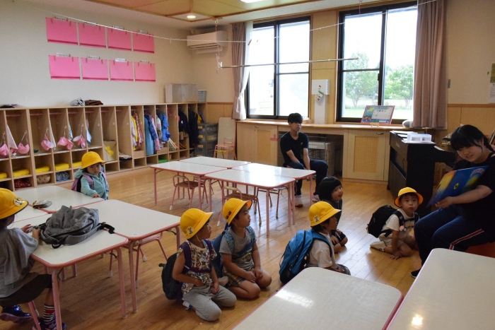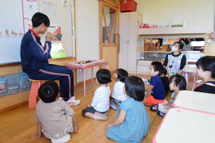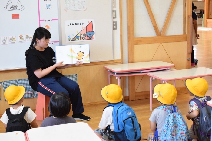 朝の会と帰りの会では絵本の読み聞かせもしてもらいました。絵本も中学生が子どもたちのことを考えながら選んだものです。