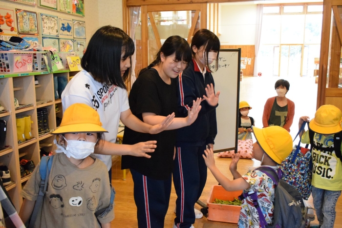 職業体験の2年生5名、今日も時間前から幼稚園に出勤!(^^)!やる気満々な姿が見られていました。