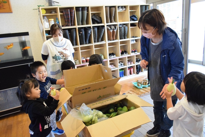 始めは「梨?」「スイカ?」と言っていた子どもたち。