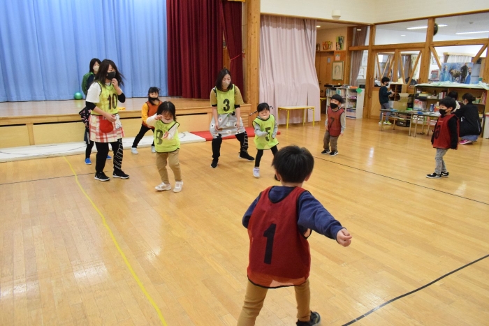 今日もお休みが多かったのですが、朝はドッチビーが定着しているようで仲間を集めてチーム分け、ビブスを着て試合を楽しんでいました。審判役も人気です。