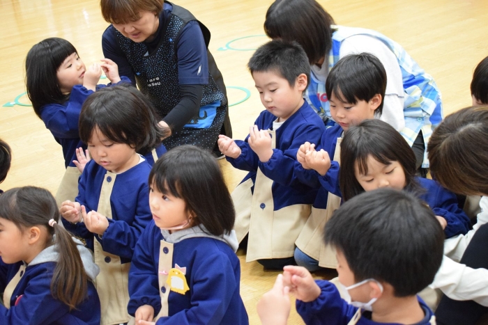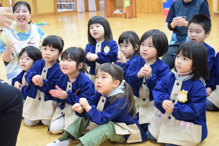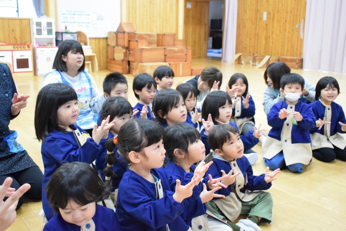 まずは手遊びから。指を1本ずつ出すのに苦労していました( ;∀;)