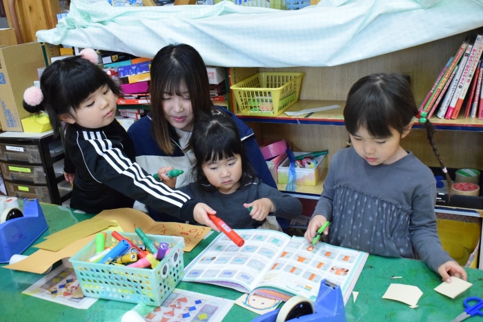 今日は別海町の小学校3年目の先生6名が幼稚園での生活を見に来てくれました。1年生から6年生の担任の先生や特別支援担当の先生たち、小学校と幼稚園との接続のあり方や幼稚園教育の内容、子どもの育ちの連続性、連携の必要性などを園児の姿や園長の話から学び取ってもらえたら、と思います。小学校へ就学に向けて子どもにとって余計な段差を作らないように、お互いの教育内容を知ることは大事なことです。子どもたちと実際に関わって、小学校教育と幼稚園教育とのなめらかな接続についてを考えるきっかけになってもらえれば幸いです。