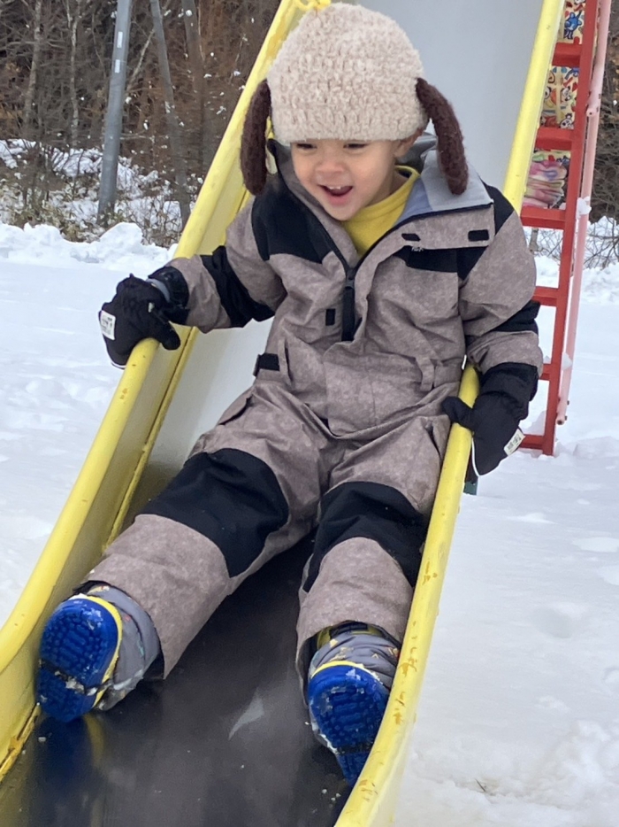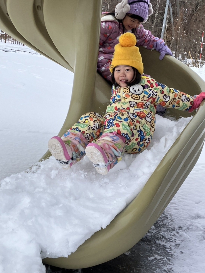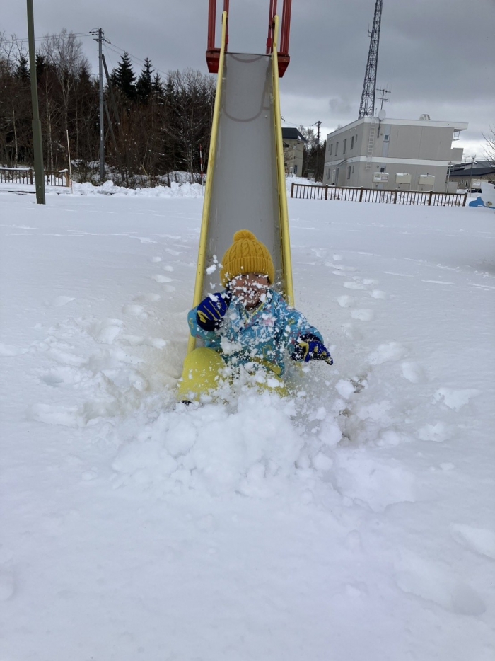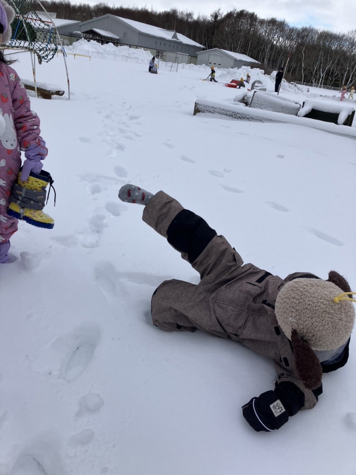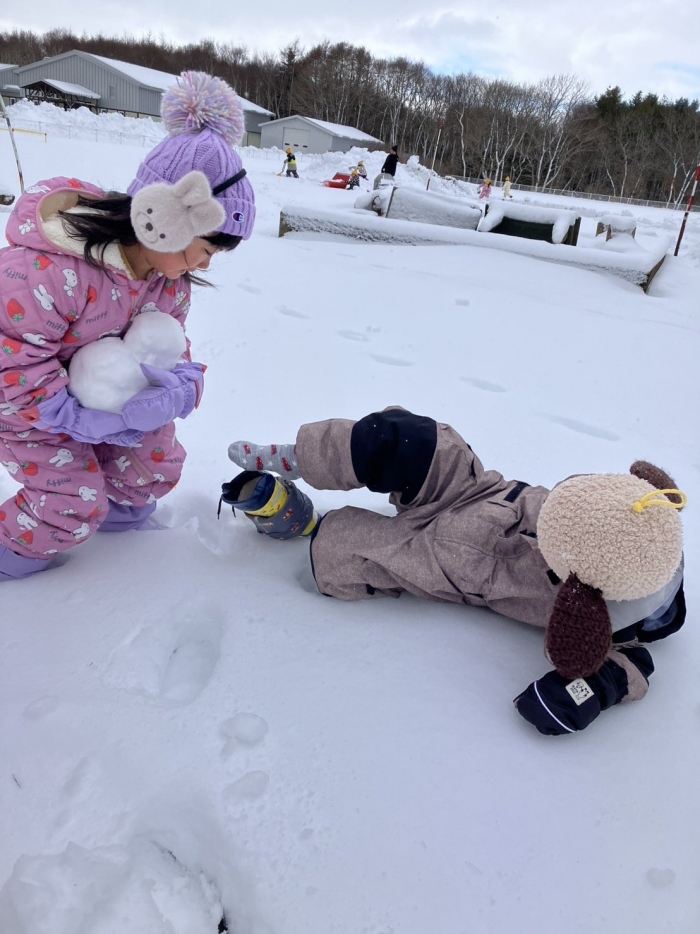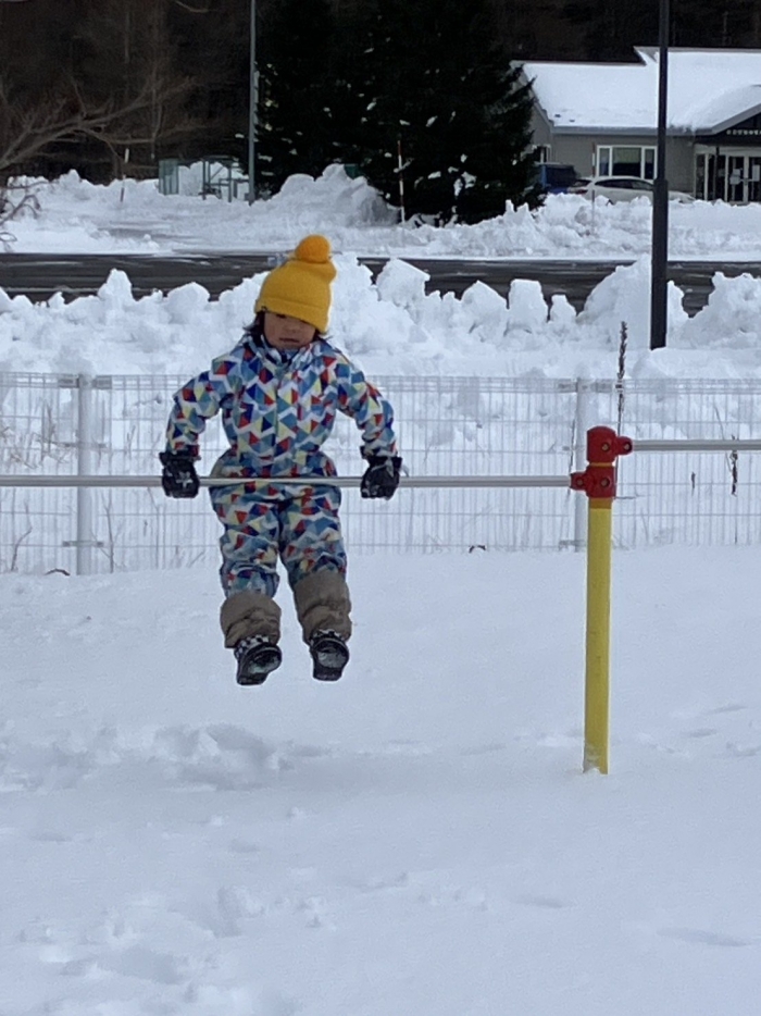 外は強風で寒さもひとしお(>_<) それでも外に飛び出して行くうめさん、ももさん。誰も「寒い」なんて言いません! たくましさ全開で遊びに夢中になっていました(^^)/