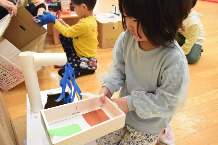 うめさんは製作が大好き!家財道具がどんどん進化していっていました(*^-^*) イメージの中で遊べる想像力の豊かさにビックリです(^^)/