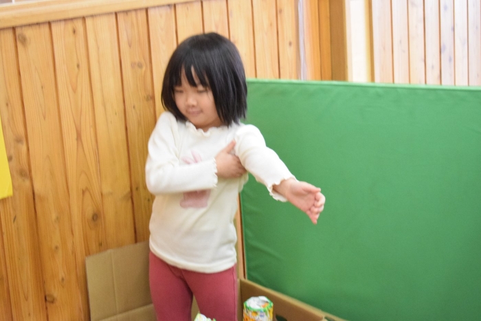 今日の全園集会では節分が近いということで『おなかのなかにオニがいる』という絵本を観ました。自分のお腹にも泣きオニや乱暴オニがいるかも!あり得るお話に子ども達も真剣に聞き入っていました。