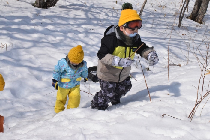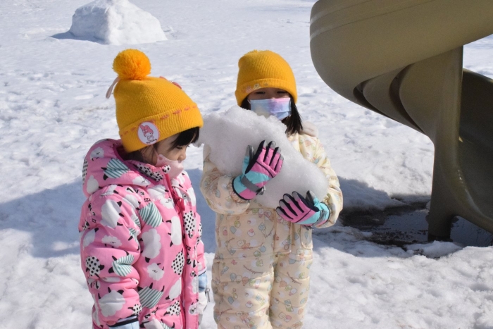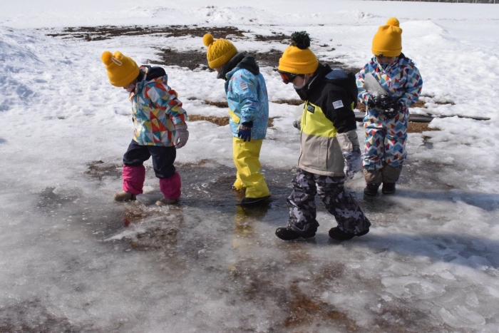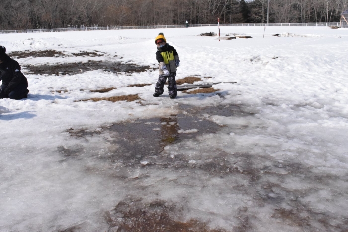 暖かくなったので雪が解けてシャーベット状になっていたり、べちゃべちゃになったり、また違った雪の感触を味わいながら、春の雪を楽しんでいました(^^)/