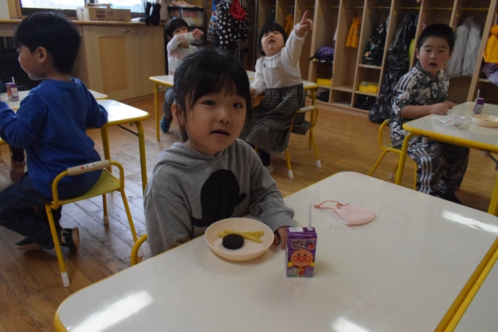 午前保育なのでお楽しみのおやつが! ホッとするひと時(*^-^*)