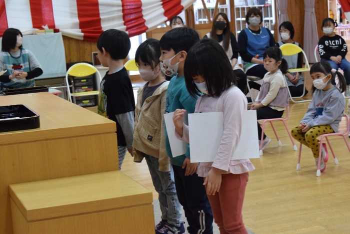 卒園式で姿勢の正し方やお返事の仕方もしっかり見ていた子ども達、今度は自分たちの番とばかりに意識をもって練習に参加している姿がステキでした(*^-^*) これならみんな修了証書がもらえることでしょう(^^)/