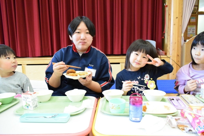 また、今日から二日間野付中学校2年生2名が職場体験学習で幼稚園に来ています。二人ともちょっと緊張しながらもなんとか園児たちの心をつかもうとがんばって接していました。