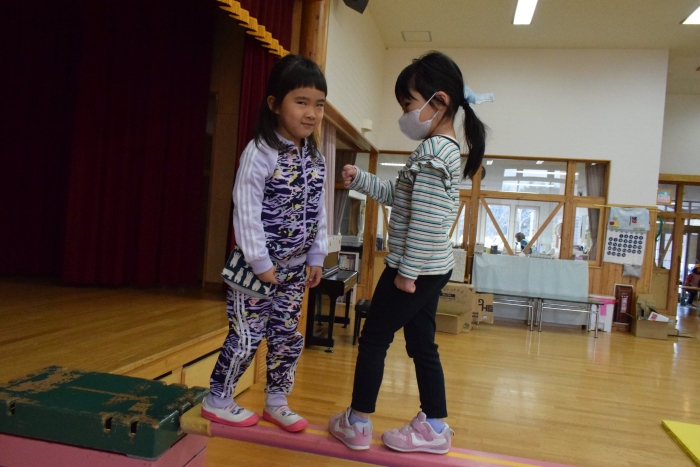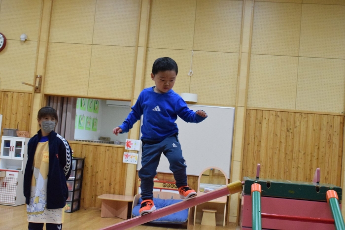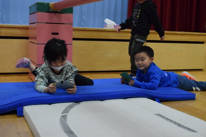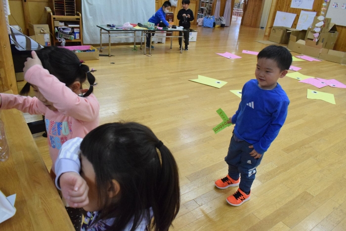 それでもプレイルームでは巧技台で体を動かしたり,くじ引き屋さん,まとあて屋さんなどの先日のはるまつりの経験からの遊びなど,やりたい遊びをそれぞれ元気に楽しむ姿が見られ,ほっとしました。