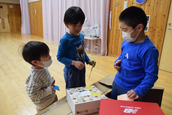 もも組さんでも先日のデカルコマニー製作の続きをしていましたよ。