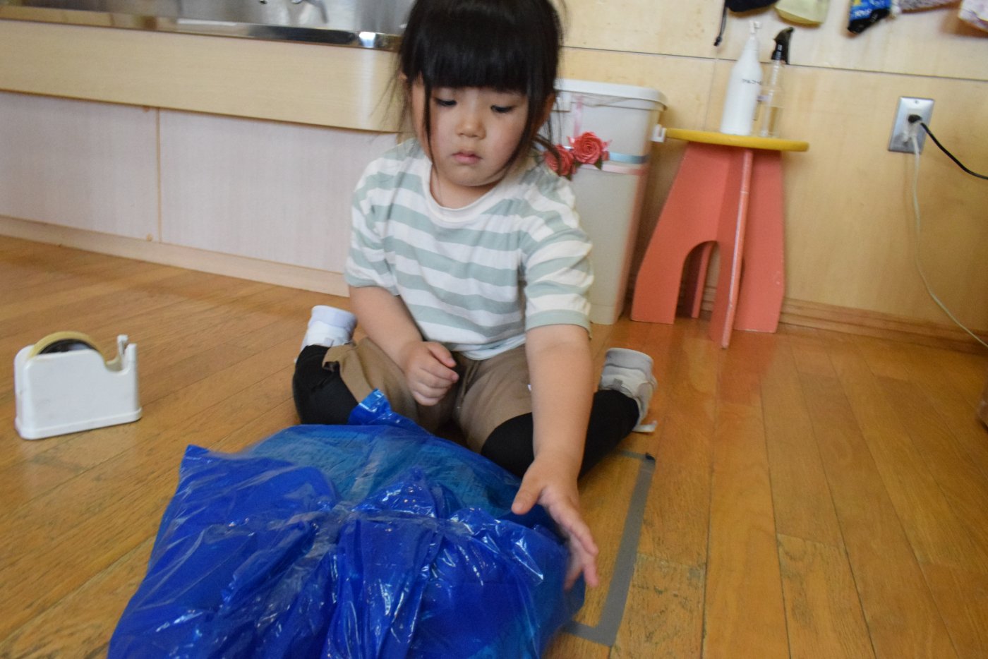 障害物競争で使うものをさくらさんが製作していました。どんなものができるのかな?