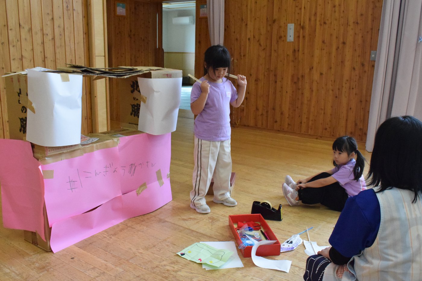 明日は根室教育局義務教育指導班指導主査,教育委員会指導参事,幼児教育センター幼児教育相談員,根室管内公立幼稚園と野付小中学校の先生方が参観に来られ,午後は保育協議を行い,野付幼稚園の保育についてのご意見をいただきます。子どもたちの遊び,そして学びについてなど,明日は先生方で,たくさん学ばせていただきたいと思います。そのため、11時30分降園とさせていただきますので,ご協力を何卒よろしくお願いいたします。