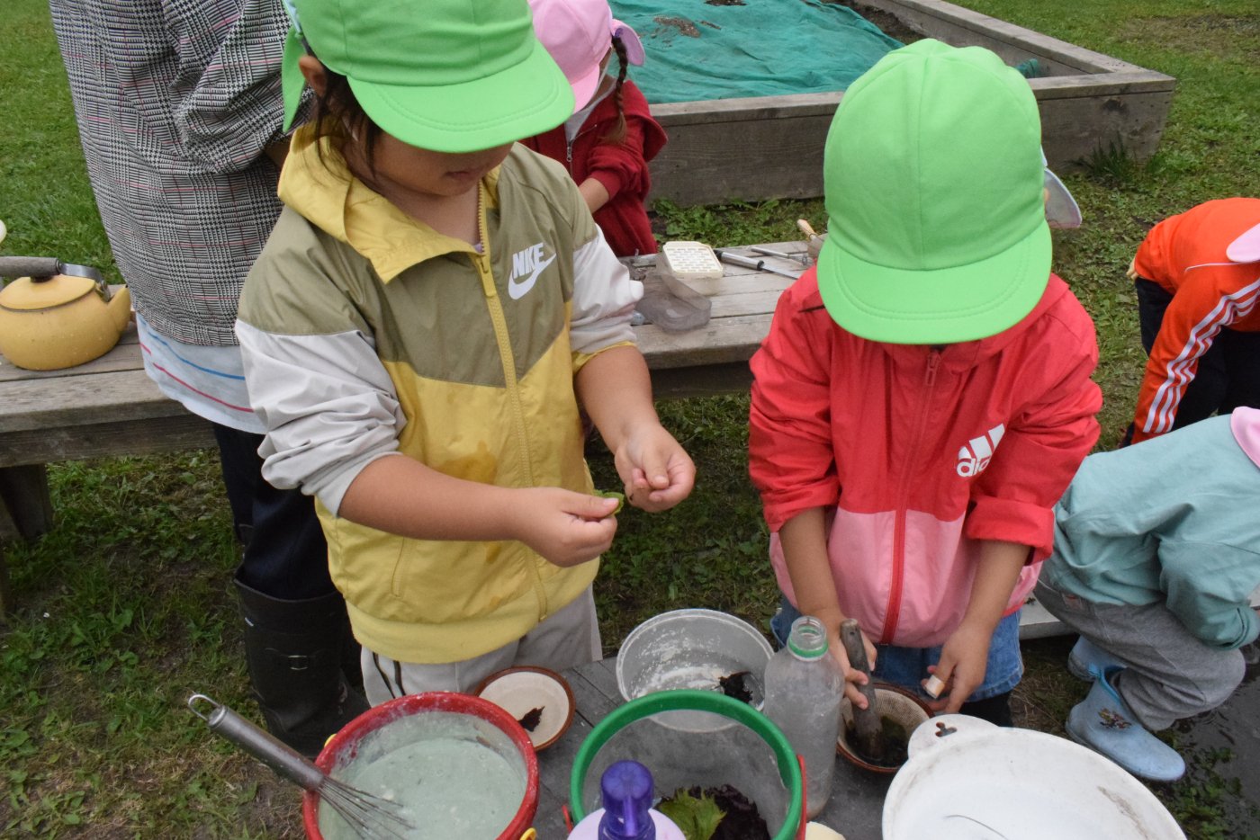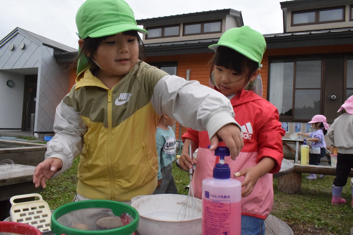 砂場では今日も色水・泡・お料理づくり