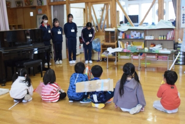 今朝もプレイルームではお祭りごっこが始まっていました。そして,人形劇屋さんのお友達の,のどの調子が良くなくて,昨日は人形劇をお休みしていたのですが,今日はお店をオープンして,人形劇も上演していました。今日の演目は「どんぐりころころ」と「まつぼっくり」でした。