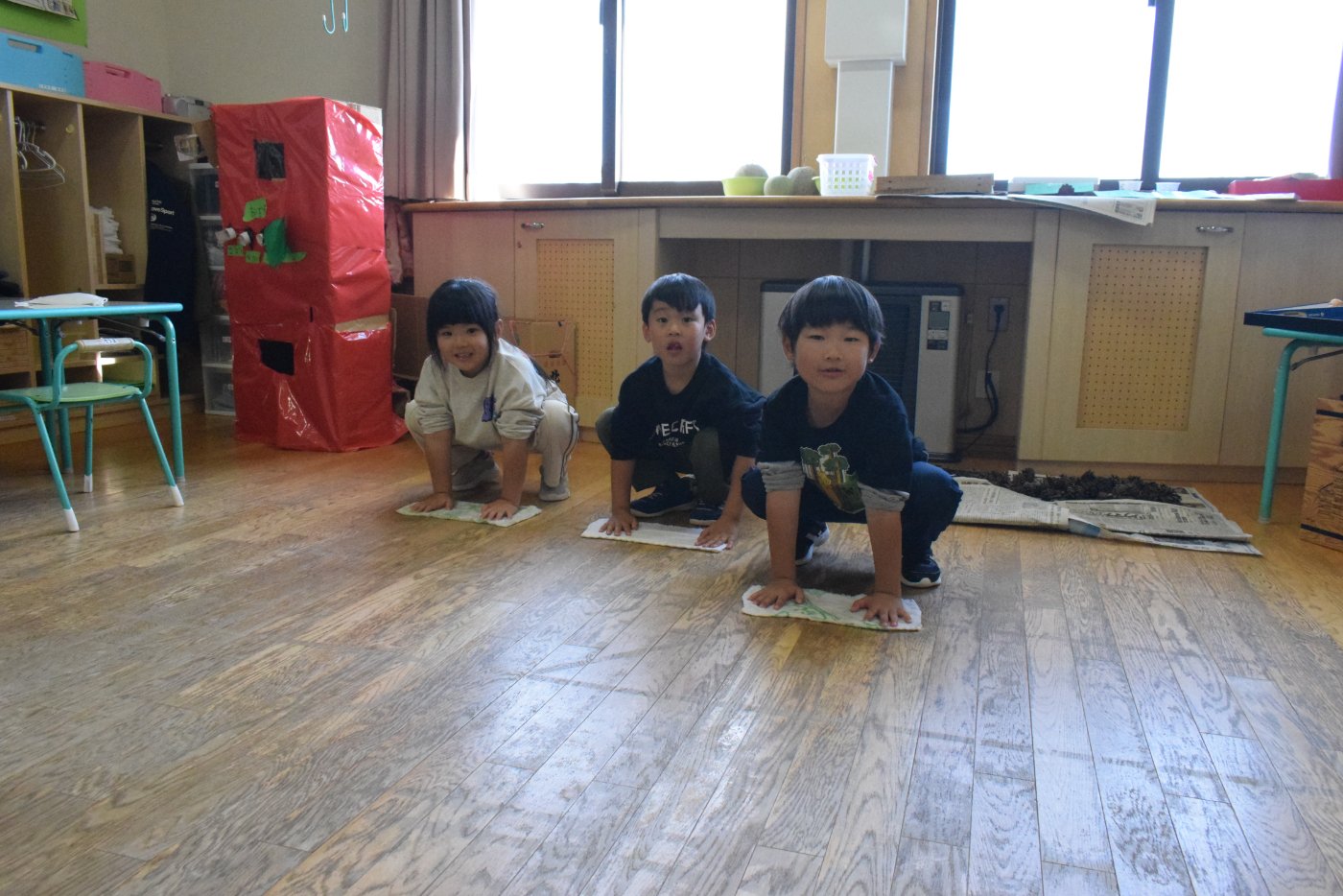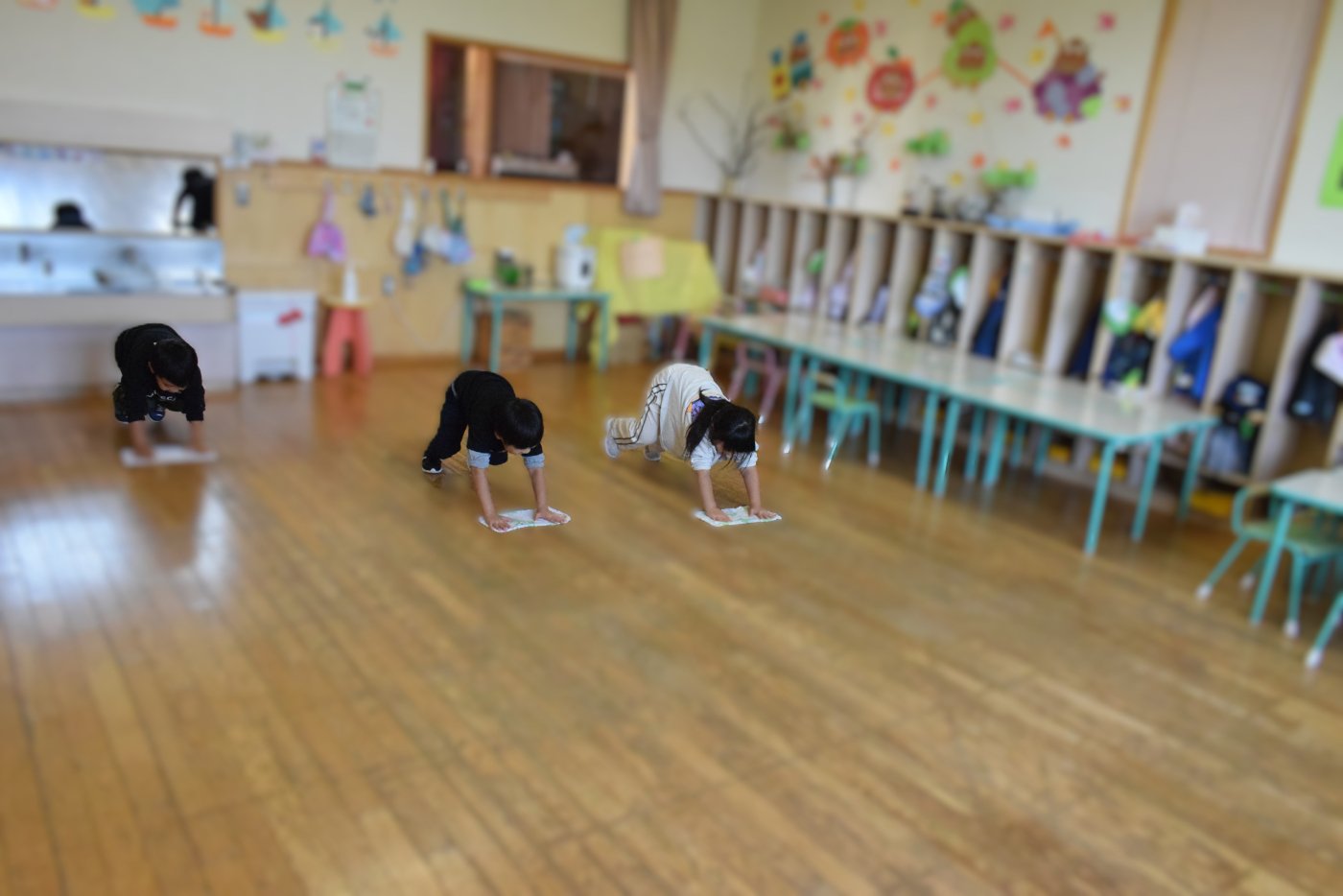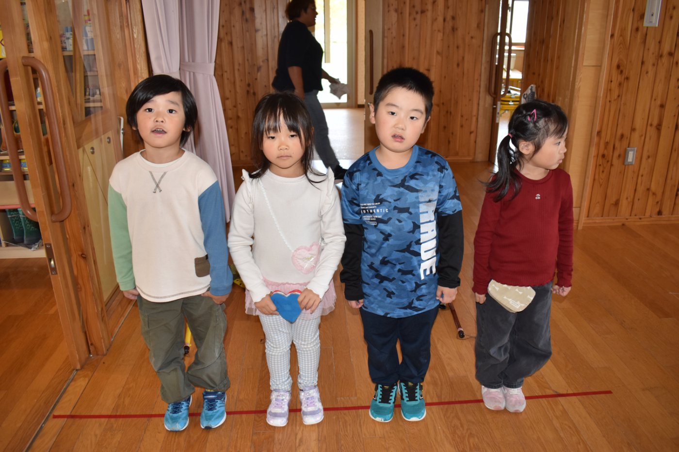 さくら組さんだけの活動…特別感も感じて楽し気な様子でした。午後活動が始まったばかりですので,さくら組さんもまだ体が慣れず,疲れも見えてくるかと思います。夜は早めに寝るなど,体を休めてくださいね。