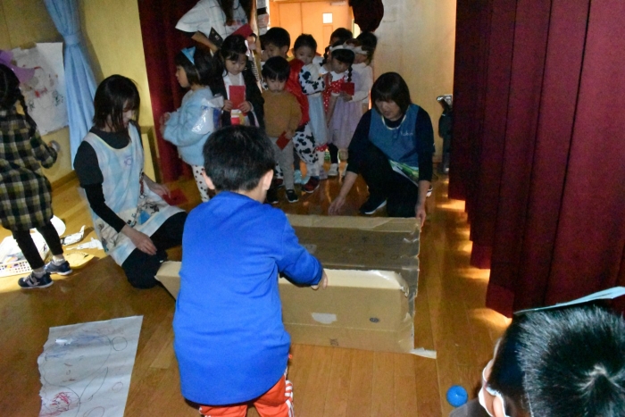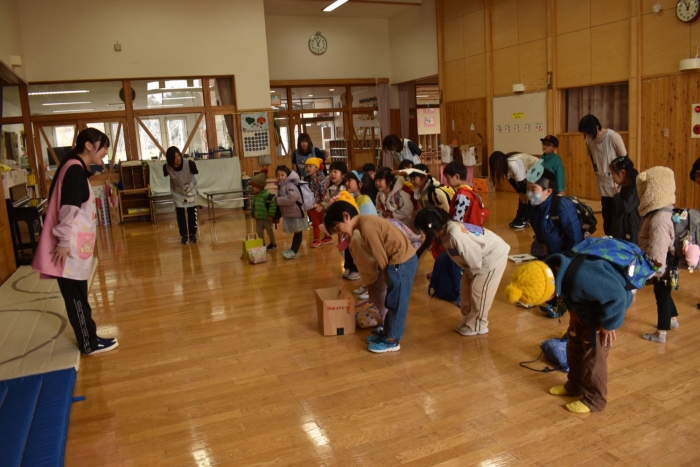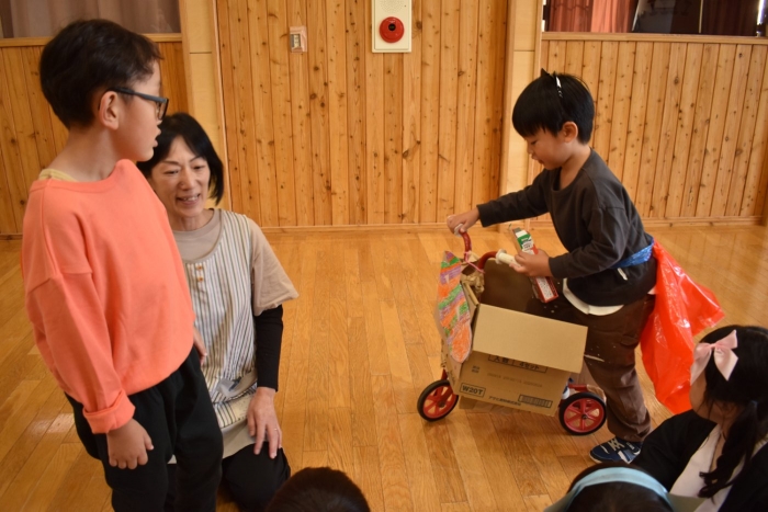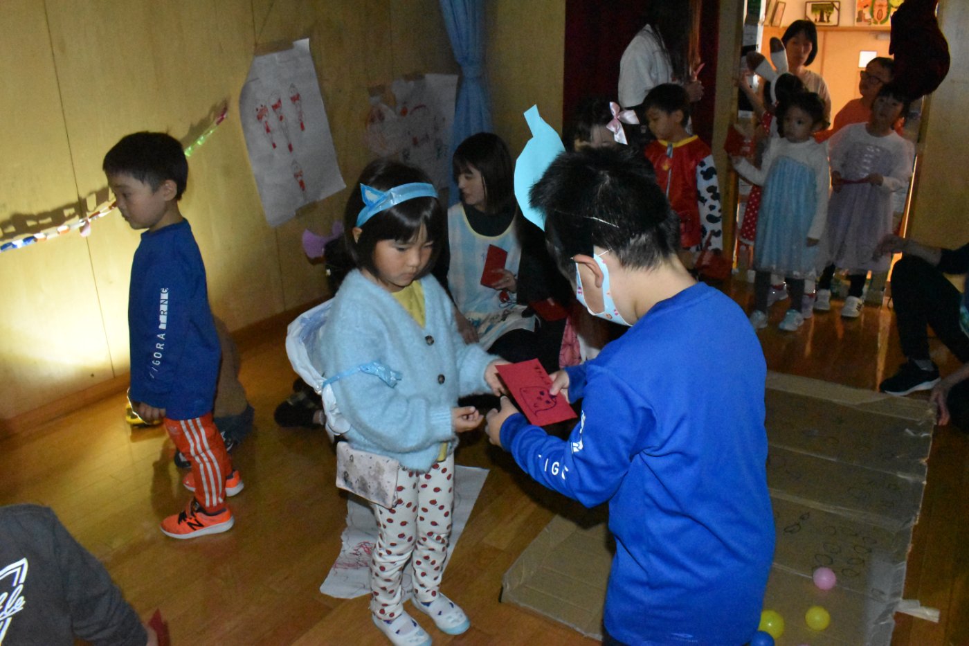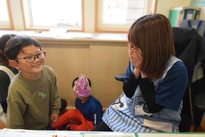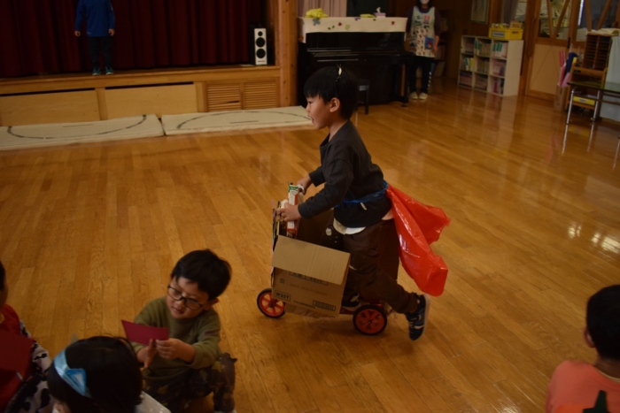 自分たちのアイディアを出しながら友達とコツコツと準備をしてきたさくら組さん。今日のどっきり大作戦part2でうめ組さんともも組さんの喜ぶ顔を見られて,大成功!さくら組さんも満足感を感じていたようです。うめ組さんともも組さんはpart1に続いてさくら組さんの企画に,今回もとても喜び,そしてさくらさんってすごいね,と憧れを感じていました。おもてなししてくれたさくら組さんの気持ち,しっかりと届いていたようです!さくら組さんお疲れ様でした(^^)