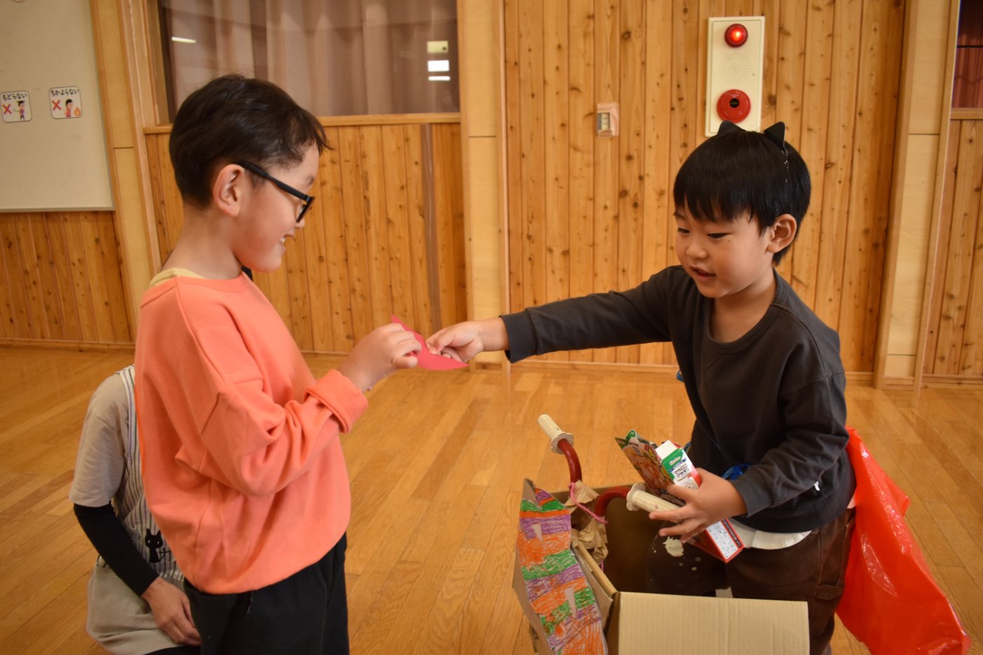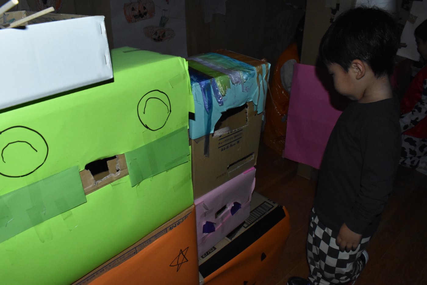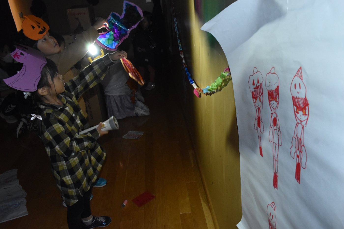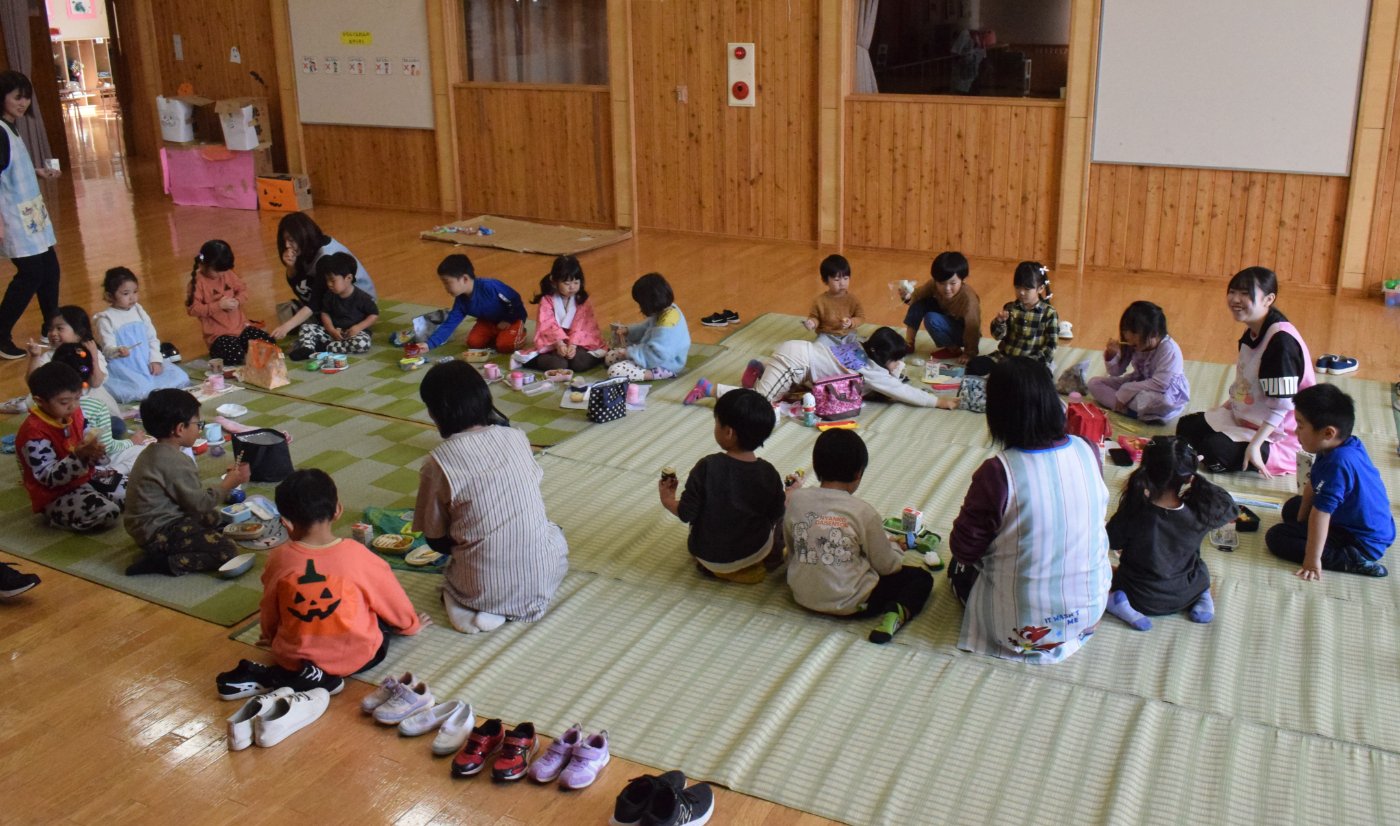 今日はさくら組のどっきり大作戦part2の日です。今日はハロウィンの日でもあるため,ハロウィンを取り入れた内容を考えたさくら組さん。ハロウィンにはお菓子が必要!ということで,幼稚園の会計を握る主査の先生に交渉したさくら組さん。交渉成立し,どっきり大作戦でみんなに配るお菓子も準備完了。以前に使っていたお店屋さんの道具なども再利用しながら,今日までコツコツと準備を進めてきました。そしていよいよ今日,本番を迎えました。さくら組さん,今朝は直前の準備を入念に行っていました。