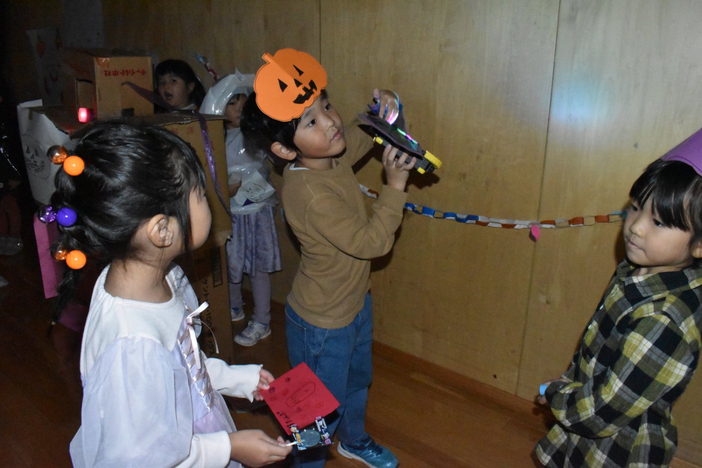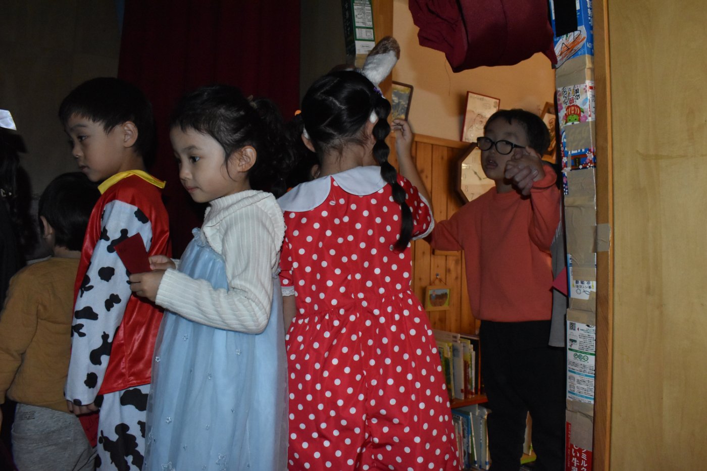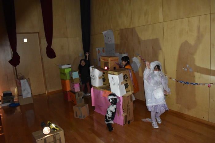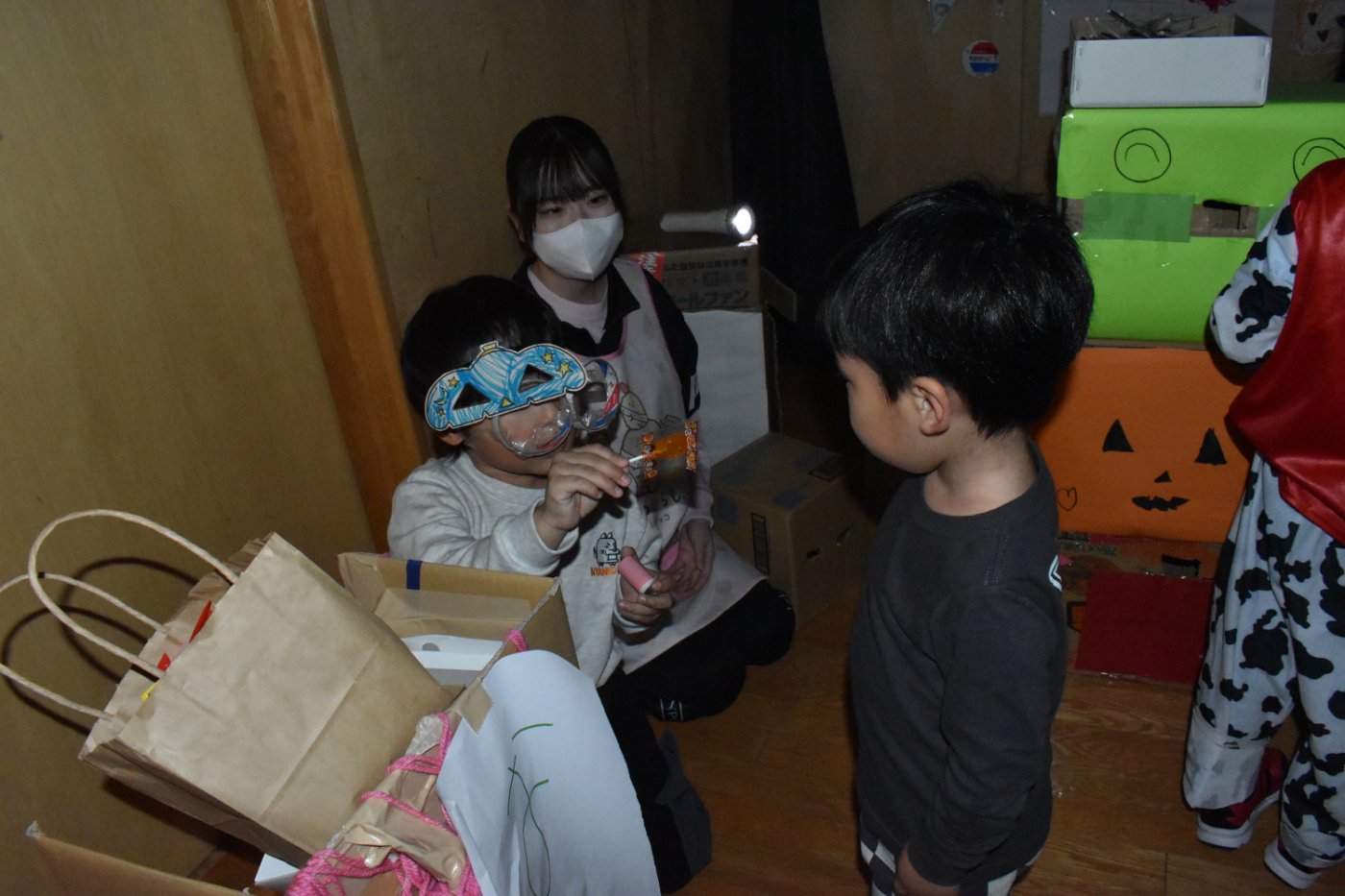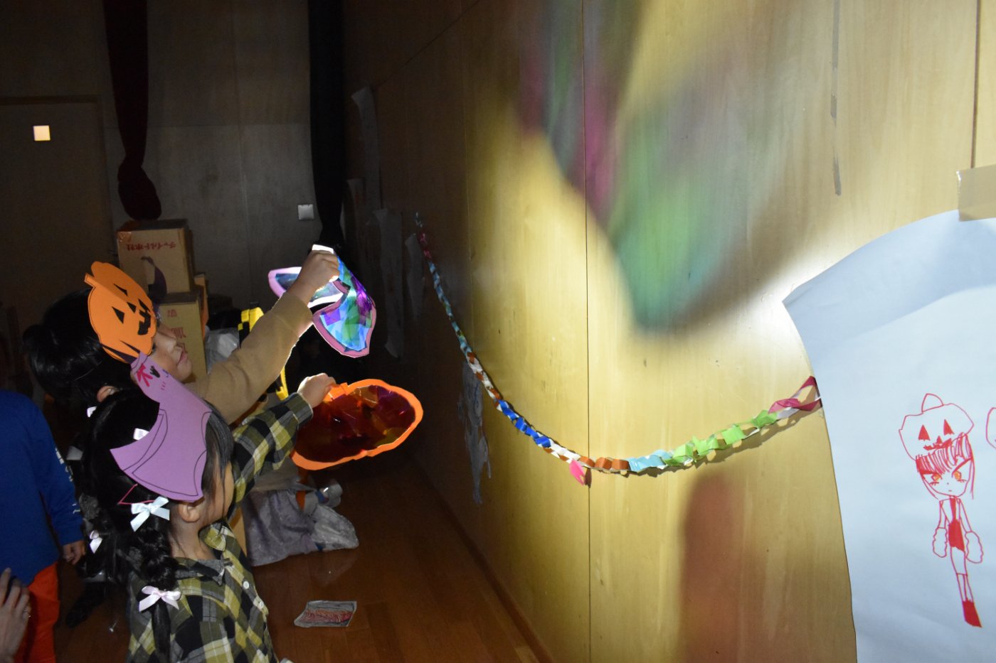 今日はさくら組のどっきり大作戦part2の日です。今日はハロウィンの日でもあるため,ハロウィンを取り入れた内容を考えたさくら組さん。ハロウィンにはお菓子が必要!ということで,幼稚園の会計を握る主査の先生に交渉したさくら組さん。交渉成立し,どっきり大作戦でみんなに配るお菓子も準備完了。以前に使っていたお店屋さんの道具なども再利用しながら,今日までコツコツと準備を進めてきました。そしていよいよ今日,本番を迎えました。さくら組さん,今朝は直前の準備を入念に行っていました。