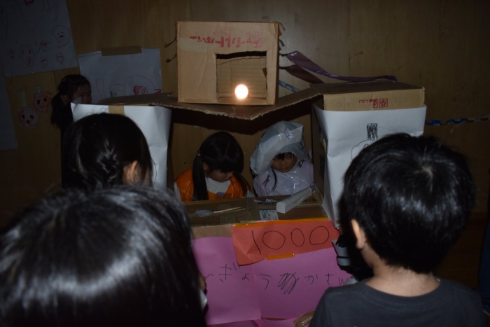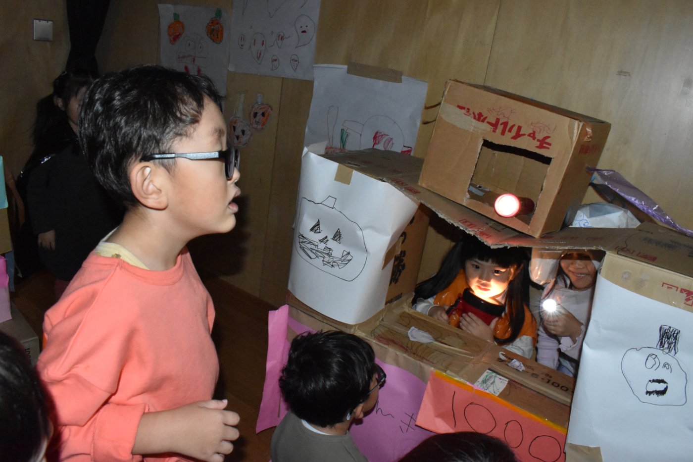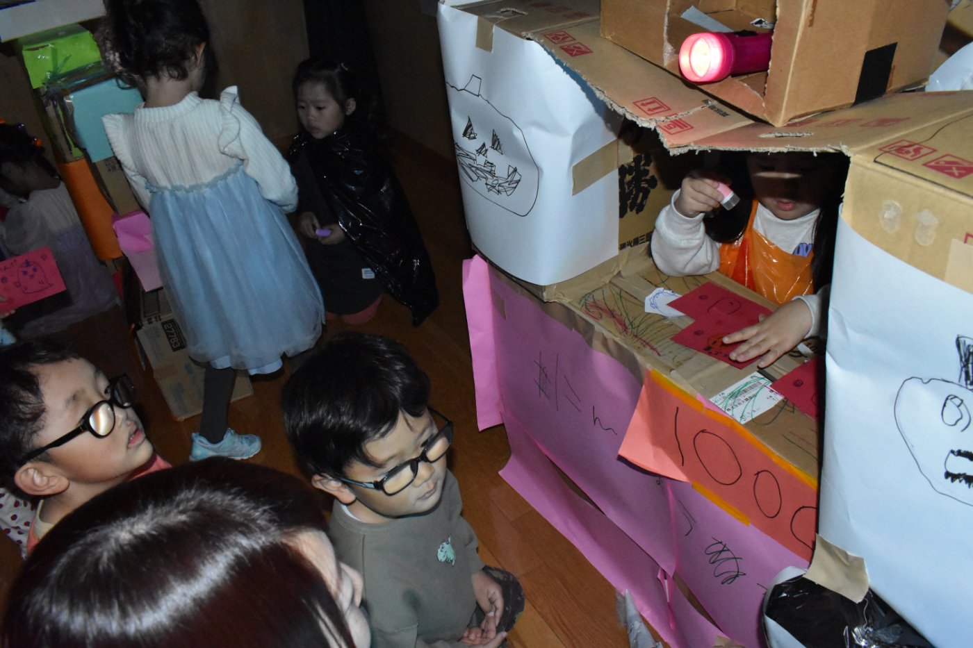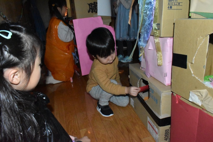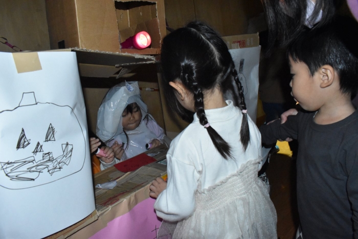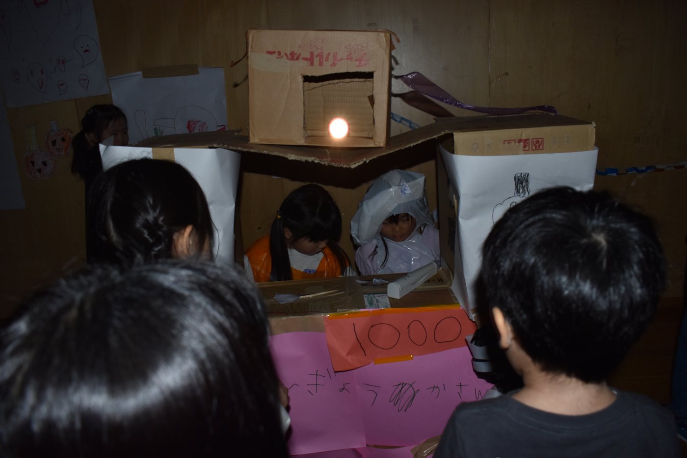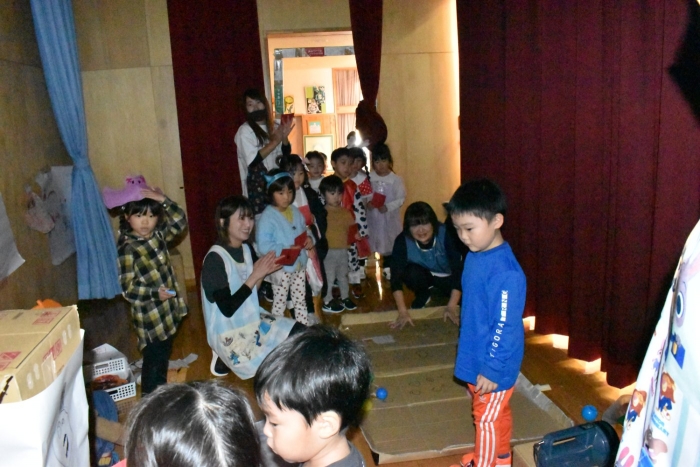 今日はさくら組のどっきり大作戦part2の日です。今日はハロウィンの日でもあるため,ハロウィンを取り入れた内容を考えたさくら組さん。ハロウィンにはお菓子が必要!ということで,幼稚園の会計を握る主査の先生に交渉したさくら組さん。交渉成立し,どっきり大作戦でみんなに配るお菓子も準備完了。以前に使っていたお店屋さんの道具なども再利用しながら,今日までコツコツと準備を進めてきました。そしていよいよ今日,本番を迎えました。さくら組さん,今朝は直前の準備を入念に行っていました。