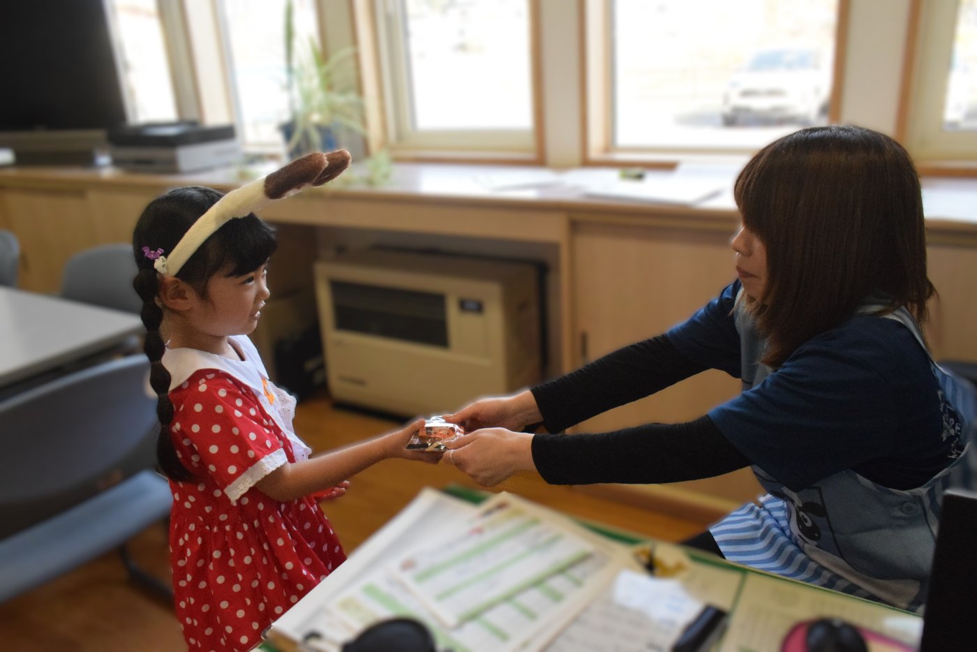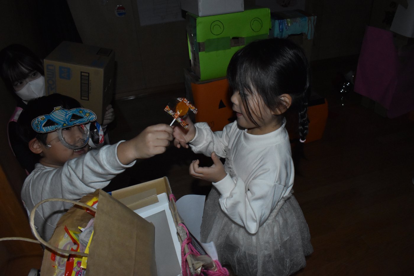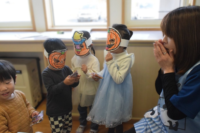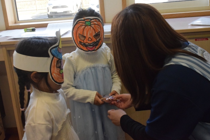 今日はハロウィン!お菓子くれないといたずらしちゃうぞ・・・という子どもたちが今年も職員室へやってきました。「トリックオアトリート」の言葉をちゃんと言えるかな?