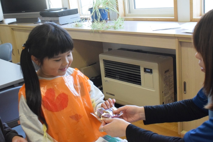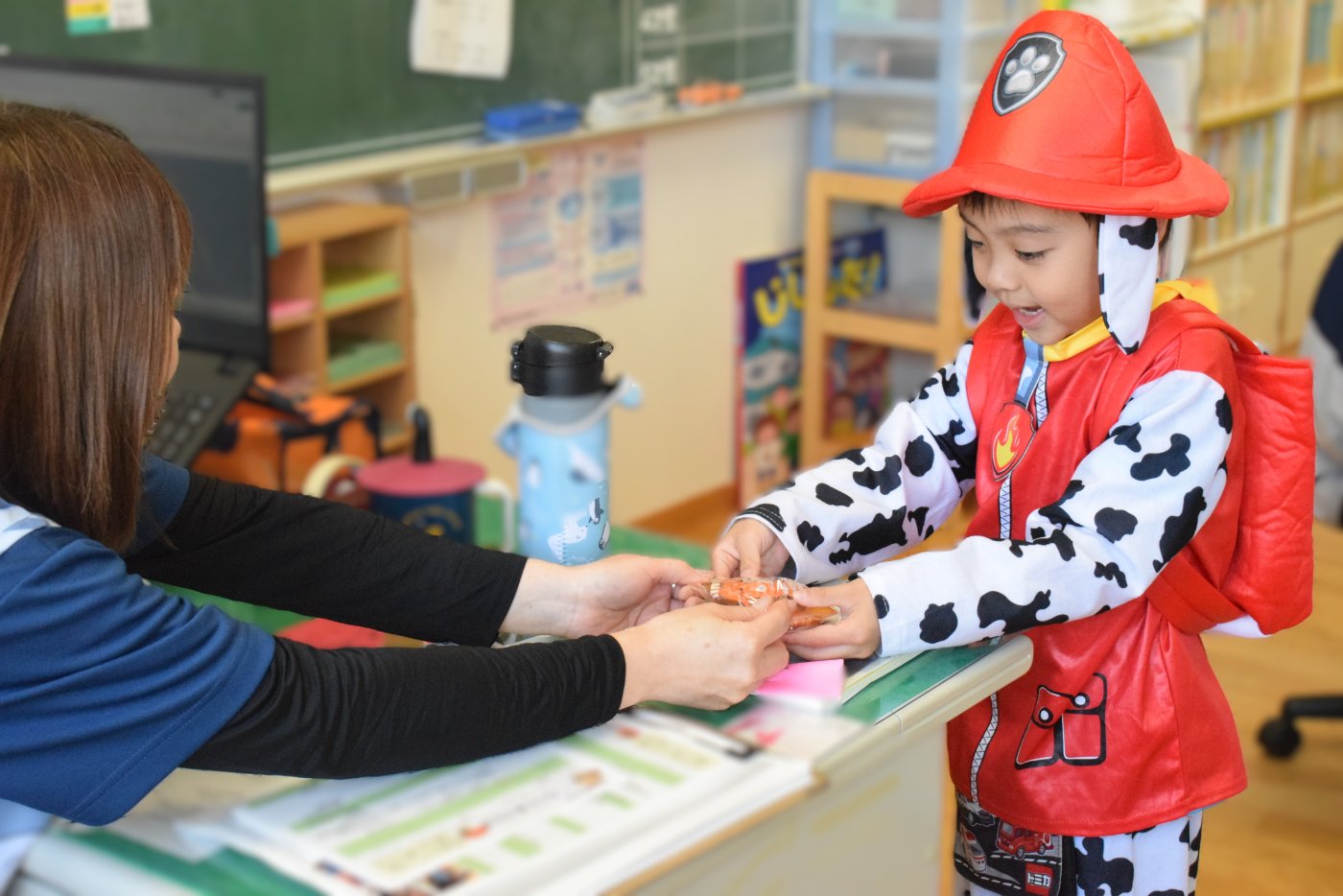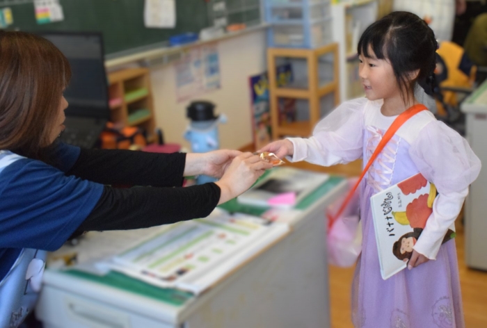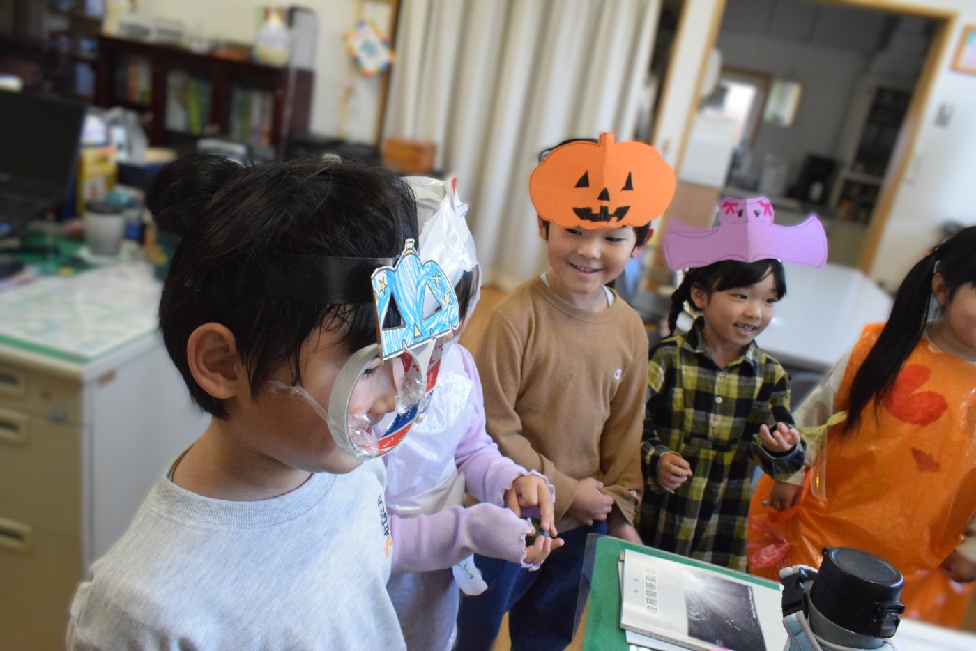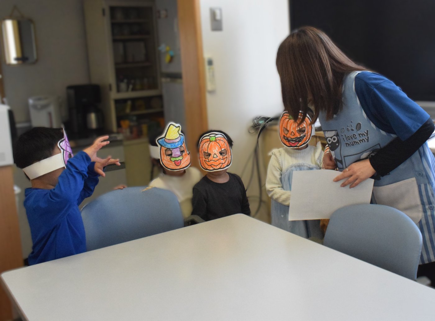 今日はハロウィン!お菓子くれないといたずらしちゃうぞ・・・という子どもたちが今年も職員室へやってきました。「トリックオアトリート」の言葉をちゃんと言えるかな?