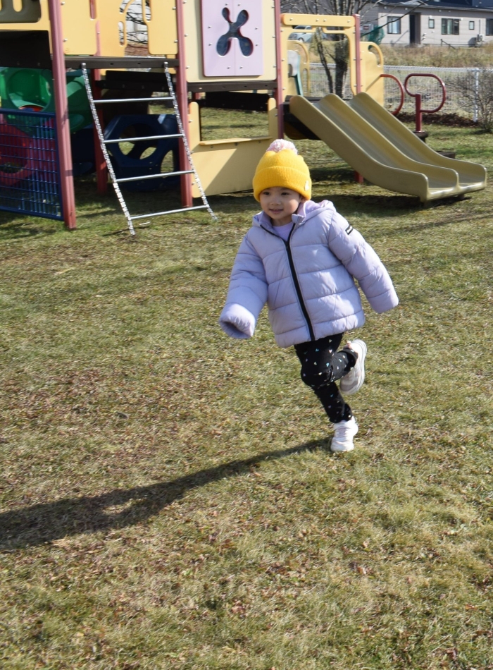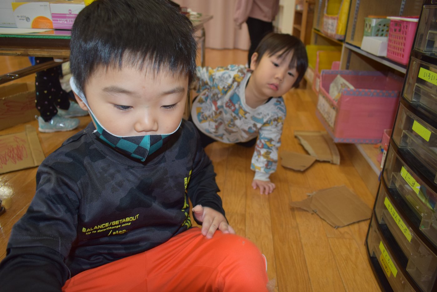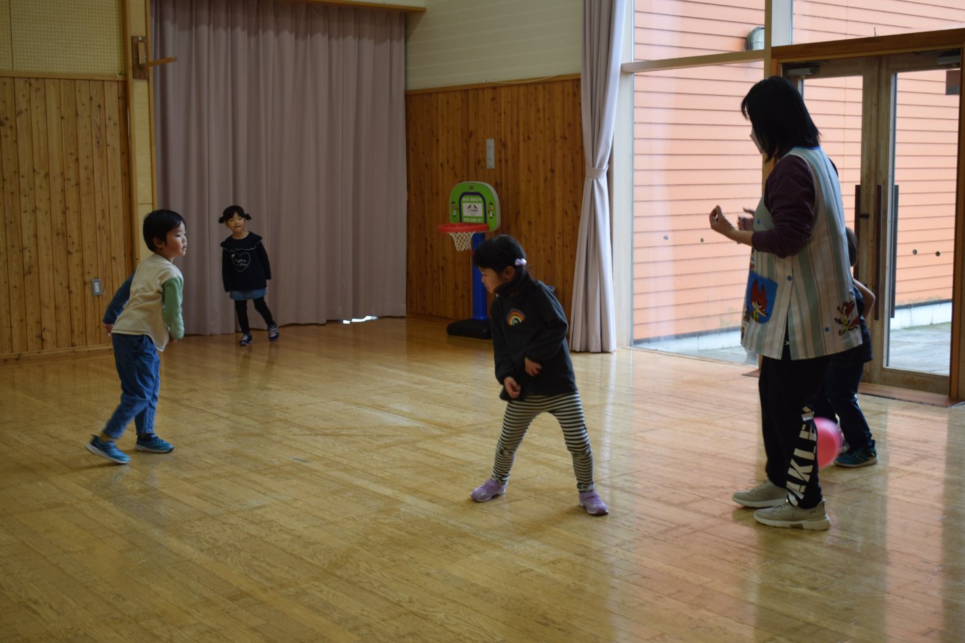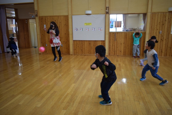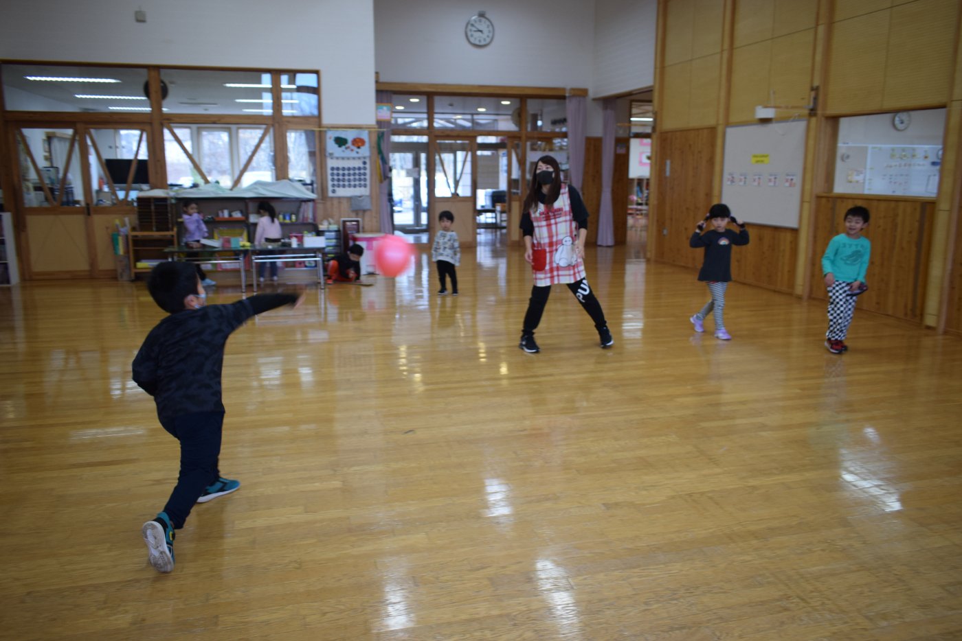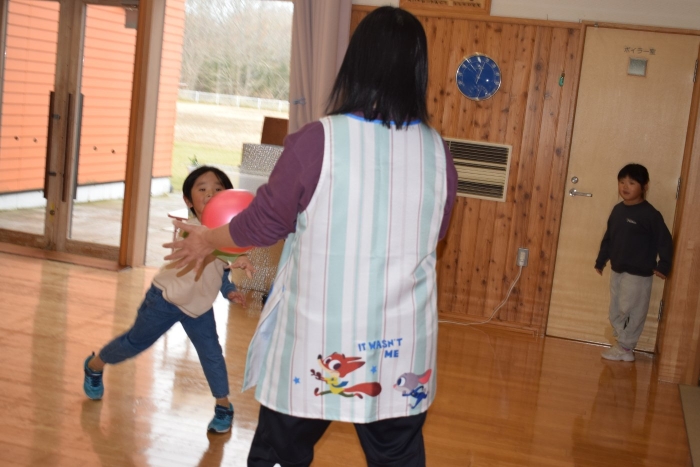 今朝も「かたき」が始まり,だいぶかたき慣れ(?)してきた子どもたちは,遊びの楽しさを感じながら,自分の力を出そうと張り切って遊んでいました。友達にボールを当てることや,投げられたボールをキャッチすることができるととても嬉しそうです。