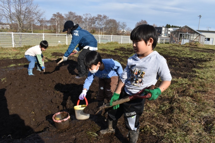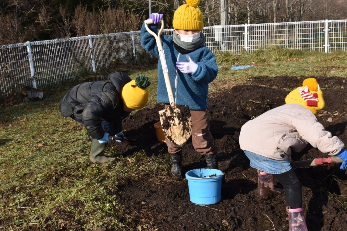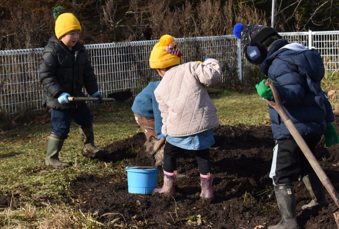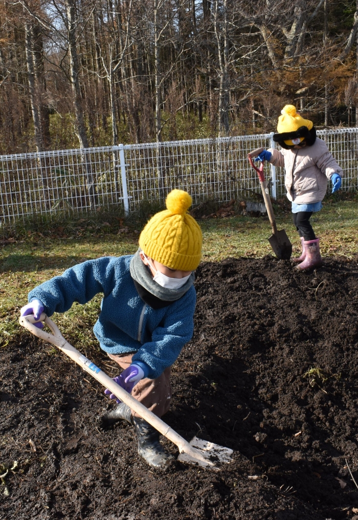 さくら組さんお疲れ様でした。大変な作業でしたが,無事に終了し、満足そうでした。たくさん体を動かしてお腹もすいて,給食もたくさんおかわりをして,漬物もたくさん食べていました(*^-^*)