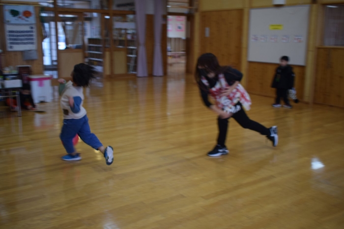 繰り返し遊ぶ中で,友達の技に気づいてそれを取り入れたり,ルールの中でできる作戦を試したり,友達を助けたり助けられたりなどの,遊びの面白さを感じている姿が見られています。まだまだ,ルールが曖昧なまま進めている場面も見受けられるため,疑問に思ったらみんなで確認し合うなど,納得のいくように進めていけると良いなと思います。