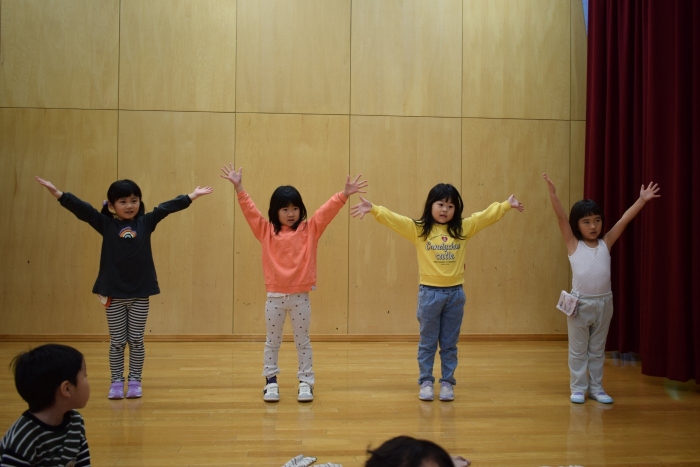 ステージではもも組さんがお遊戯会に踊るお遊戯を踊り始めましたよ。