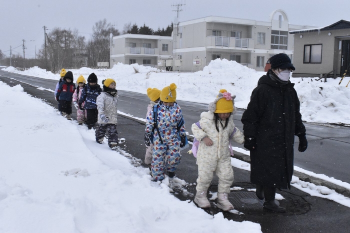 冬になってからは駐車場の除雪もしてくださっていました。そのおかげで,徒歩登降園を行うことができたこと,支えてくださっている方がいることを実感することができたさくら組でした。本当にどうもありがとうございました。