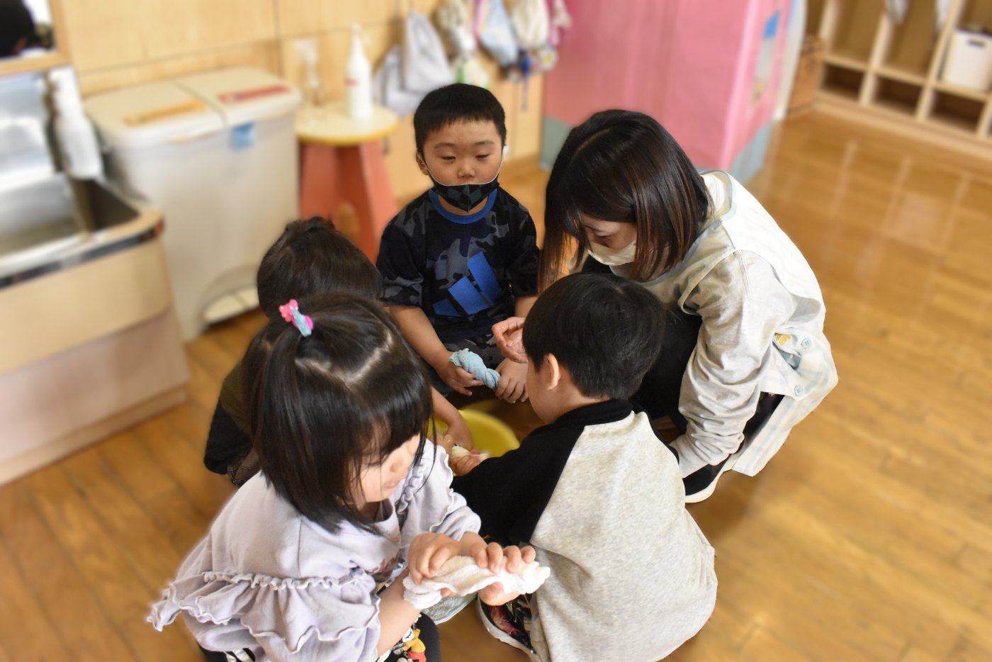 うめ組さんみんなで雑巾をしぼって