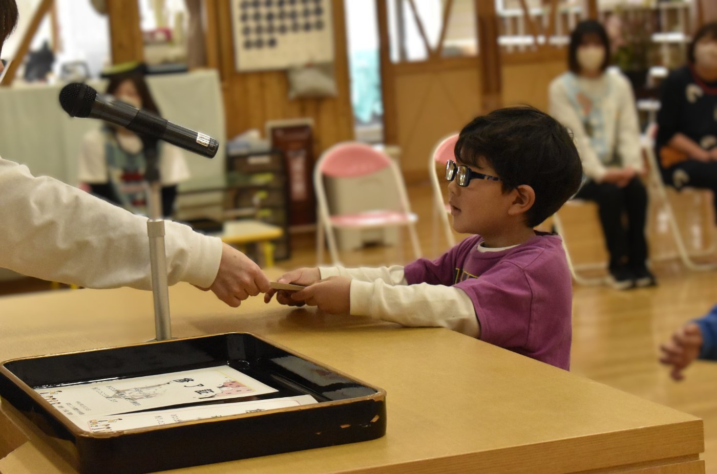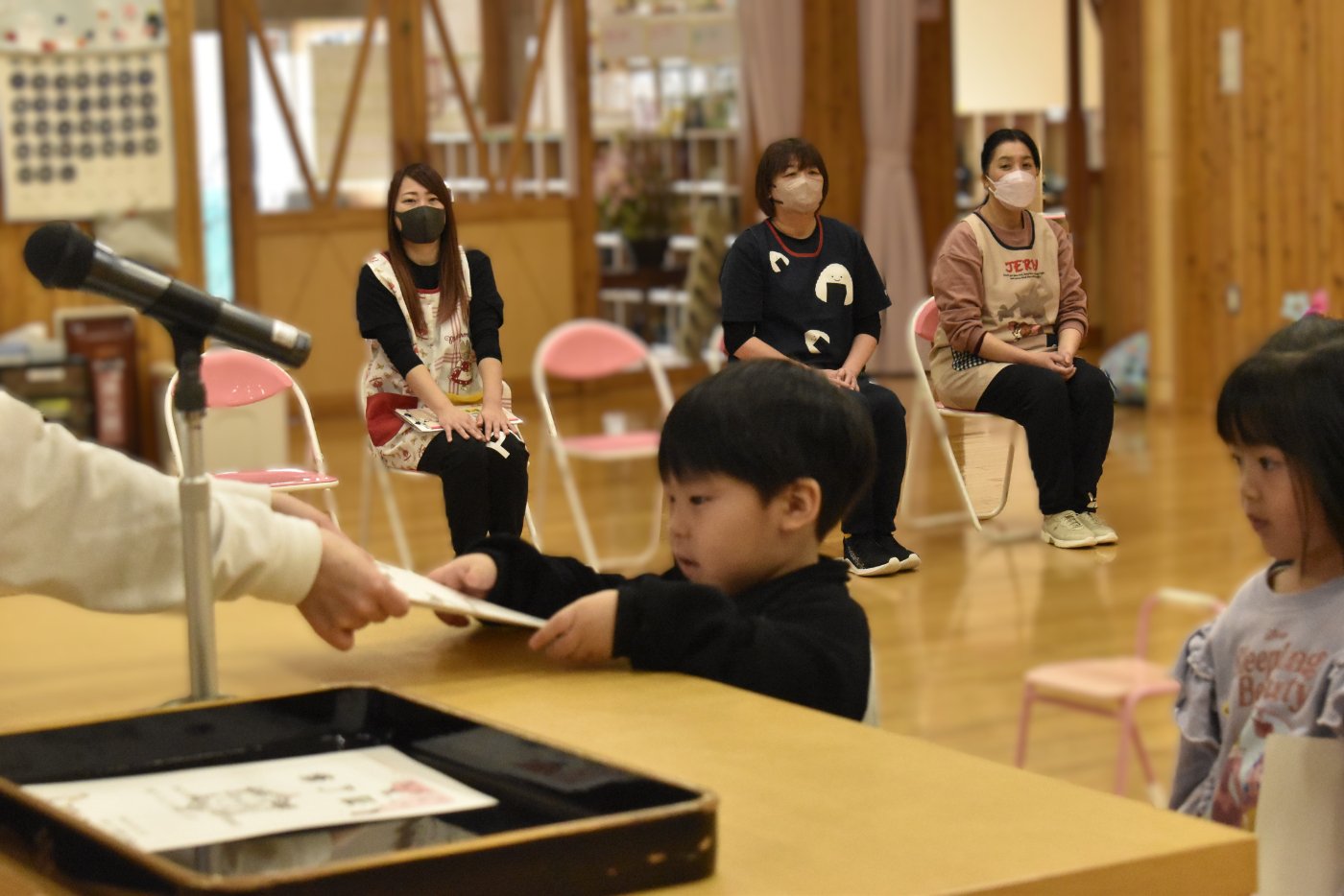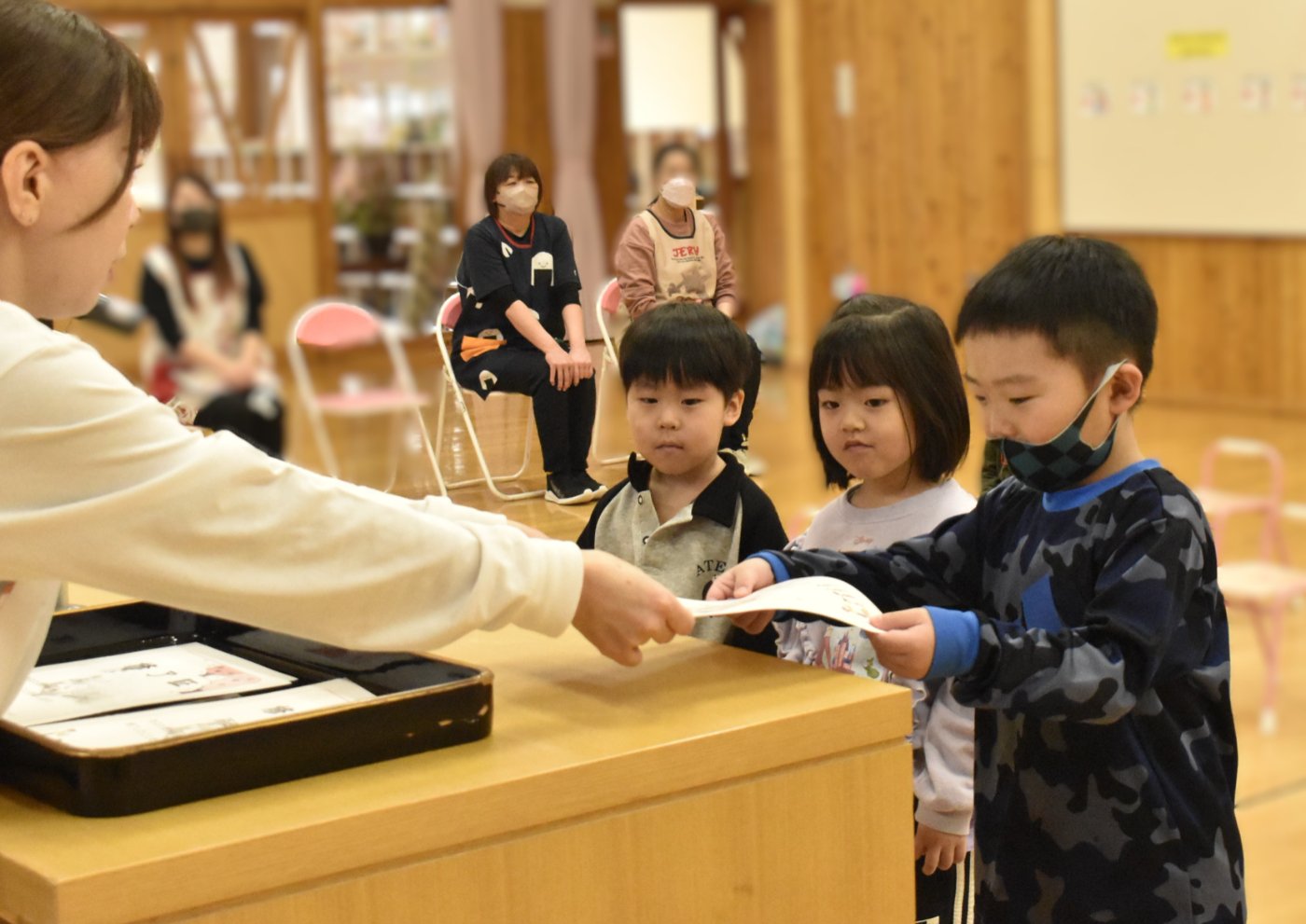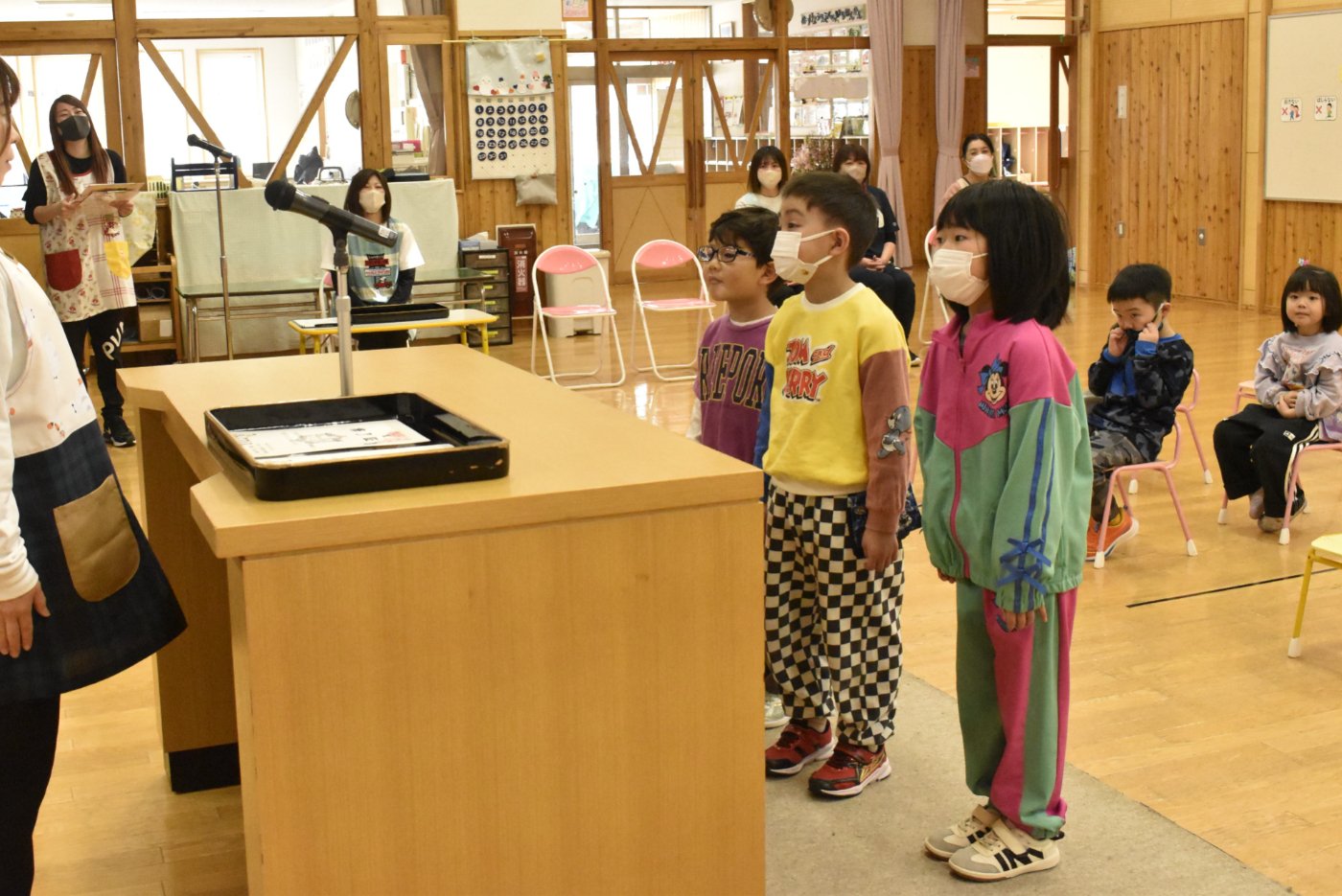 明日は令和7年度修了式。先日卒園式がありましたが,今度はうめ組さんともも組さんの番です。今年,うめ組ともも組の1年間でたくさん成長した証に,かっこよく終了証を受け取ってくださいね。