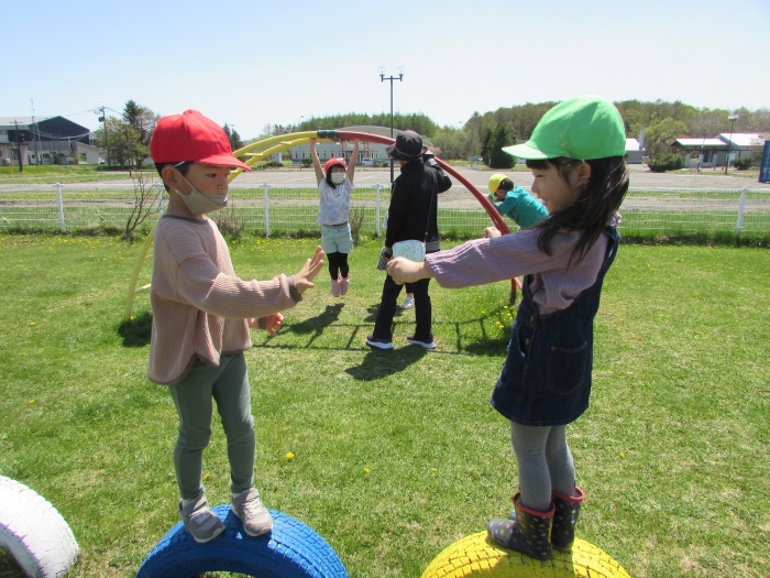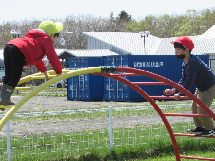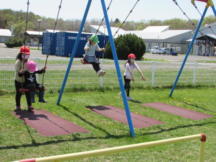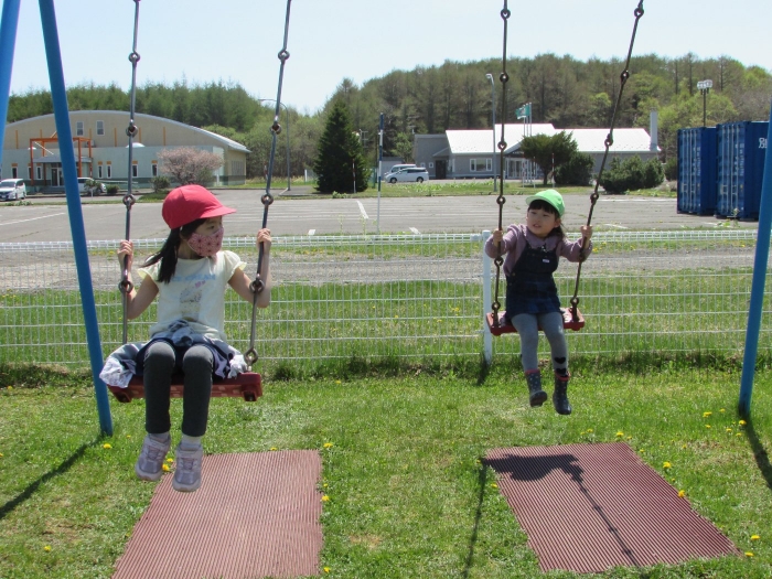 園児と遊ぶ時間ももってくれて、懐かしい遊具で思う存分遊んで行ってくれました。