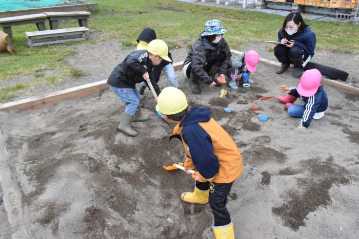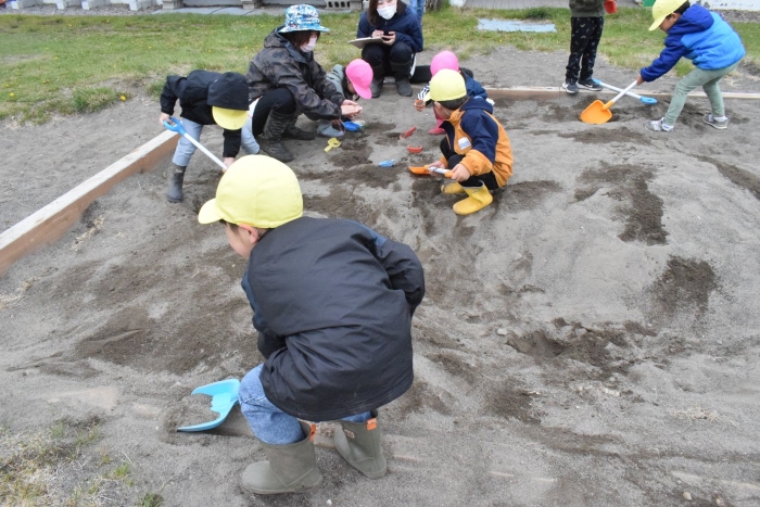 工事開始!スコップさばきも上手です。